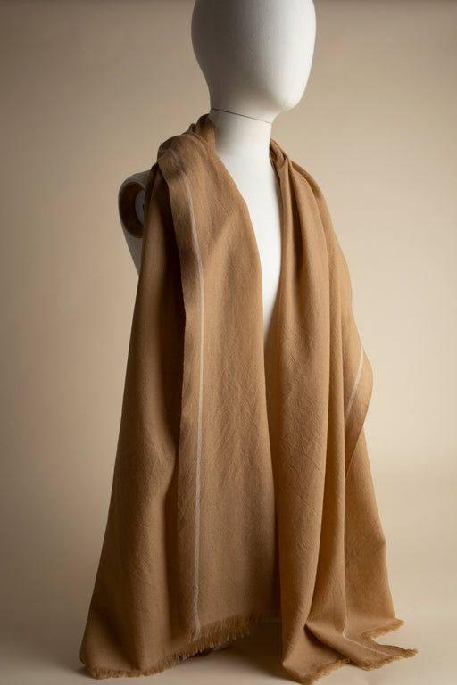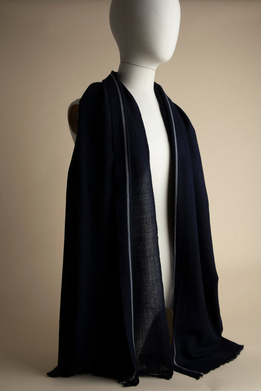Scarf or shawl? It is one moral dilemma. The the untrained eye, one might say scarf for him, and shawl for her. End of story. But this is where the possibilities begin. Truthfully, no one escapes the need for the perfect narrowness of the scarf worn indoors, outdoors, year-long. Regarding the shawl's vastness, there are 100 ways of draping this item and it's up to you to find your own approach and we've seen men take the shawl to whole new level. ça va de soi interprets these rectangles of every kind in all the exceptional materials that strike and intrigue.