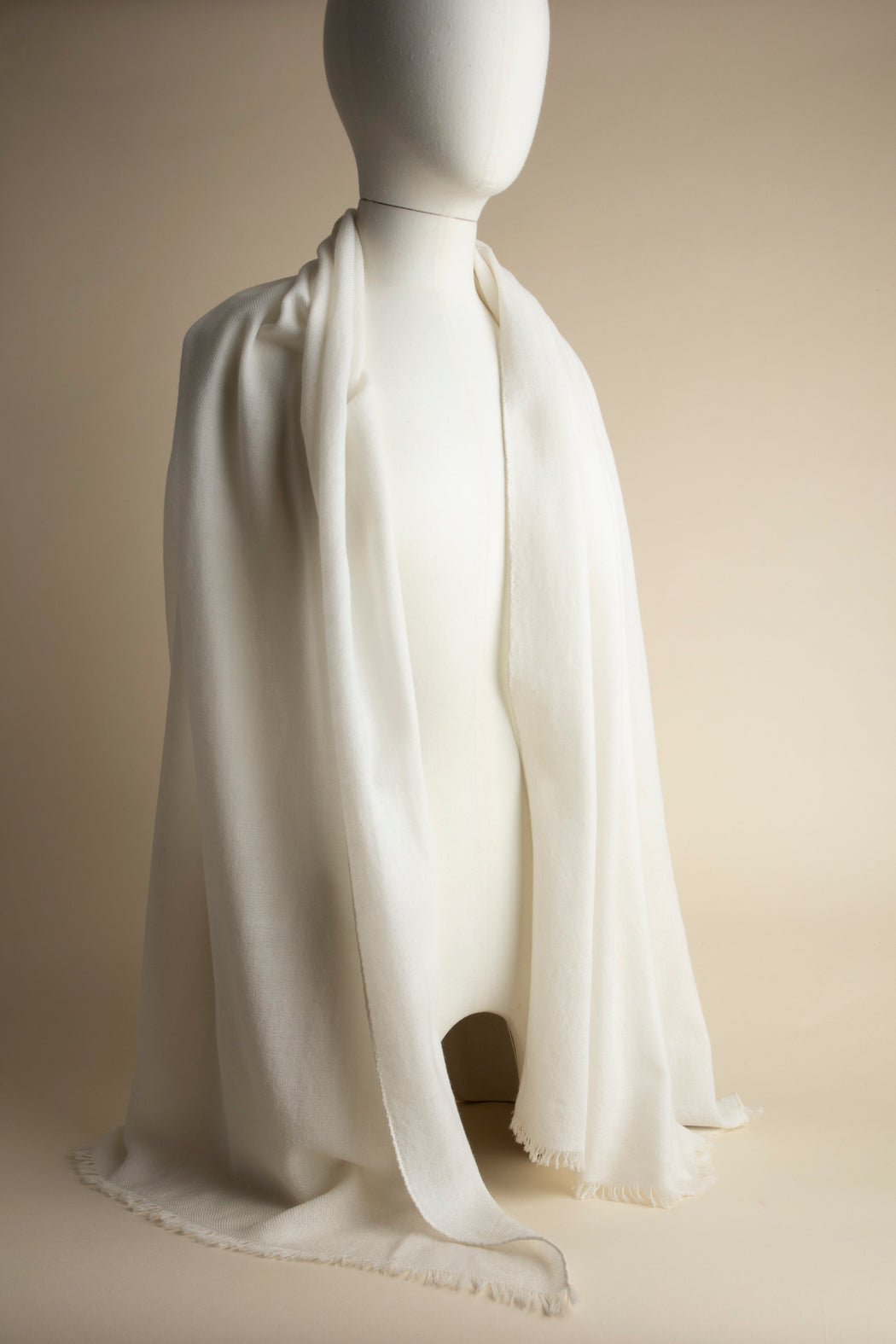 This stole provides the comfort and warmth you need, while remaining a lightweight and elegant accessory, enhanced by the subtle sheen of its ultra-fine wool.