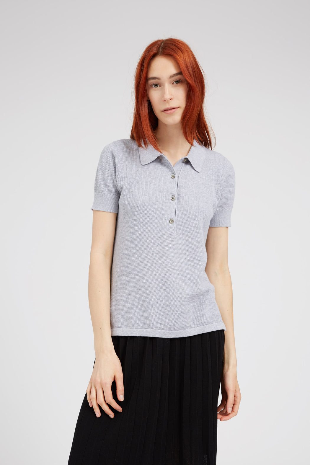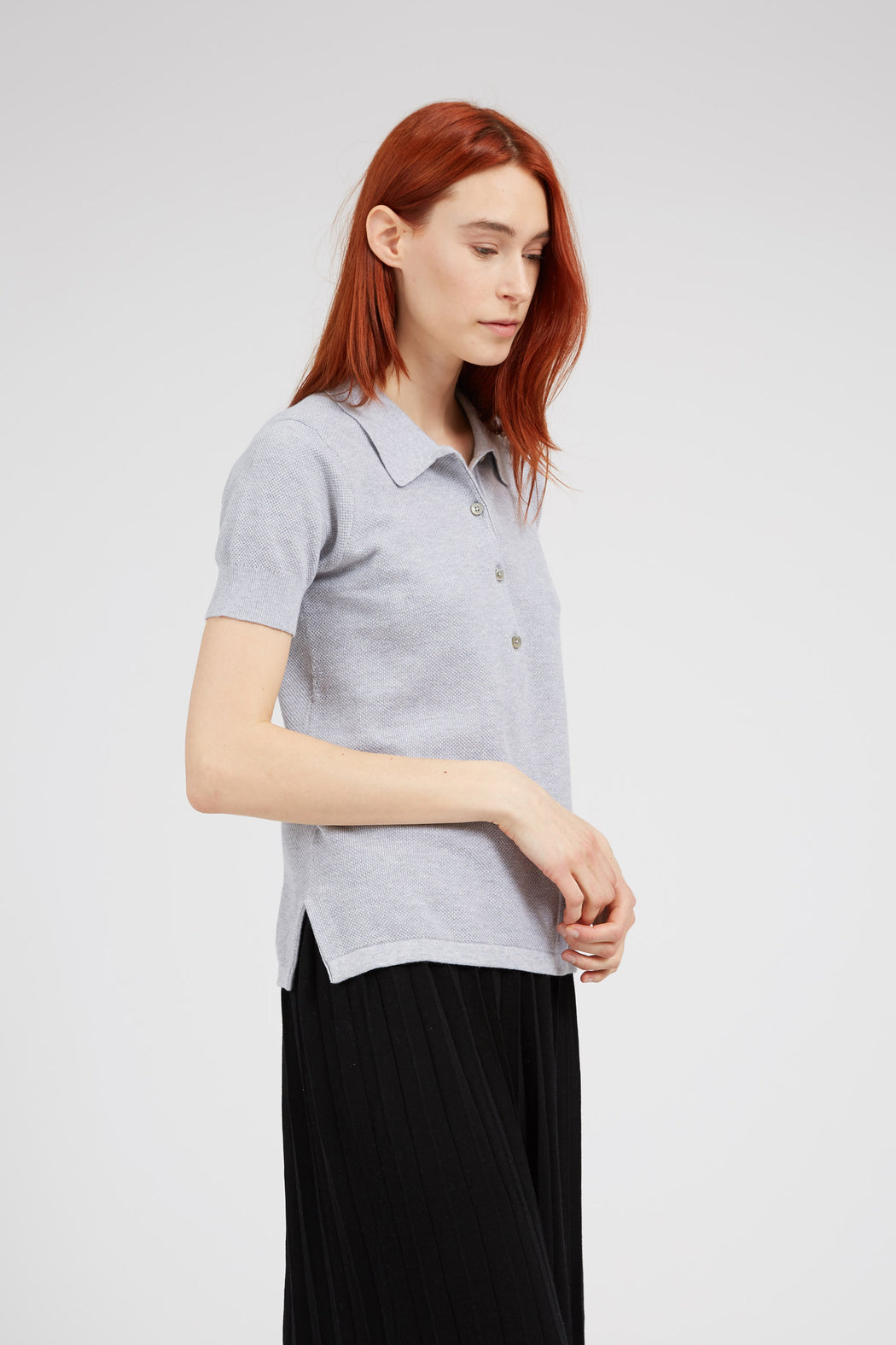 This retro short sleeve knitted polo is made of Giza 70/88 Egyptian cotton, the very essence of the classic cotton pullover. In a supersoft version, it can be worn solo in any season since it can always hold its own. This rich, comforting material lends itself to endless interpretations and countless textural variations.