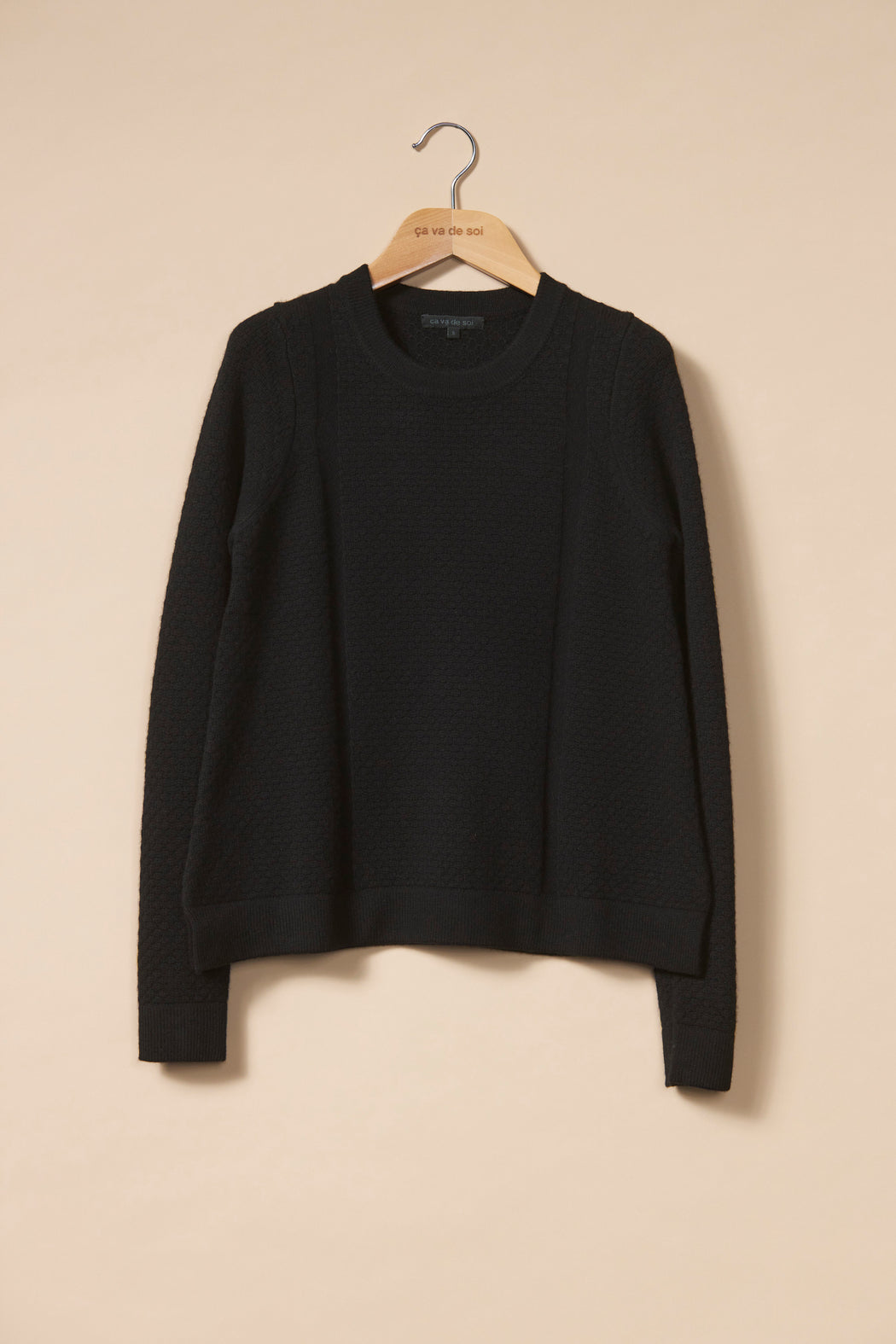 This sweater is made of Super 160 merino wool, spun in Italy specifically for ça va de soi. Australian merino wool is as simple as it is rich. Using a revolutionary carding process that integrates air bubbles, the fine and ultra-long fibres (15.5-micron) breathes and stretches to best deploy its splendor. Sweaters are so light and airy, you would almost think you're wearing a cloud. Comes across like a big sweater with the softness of a fine sweater: just a taste of what we quickly can't get enough of.