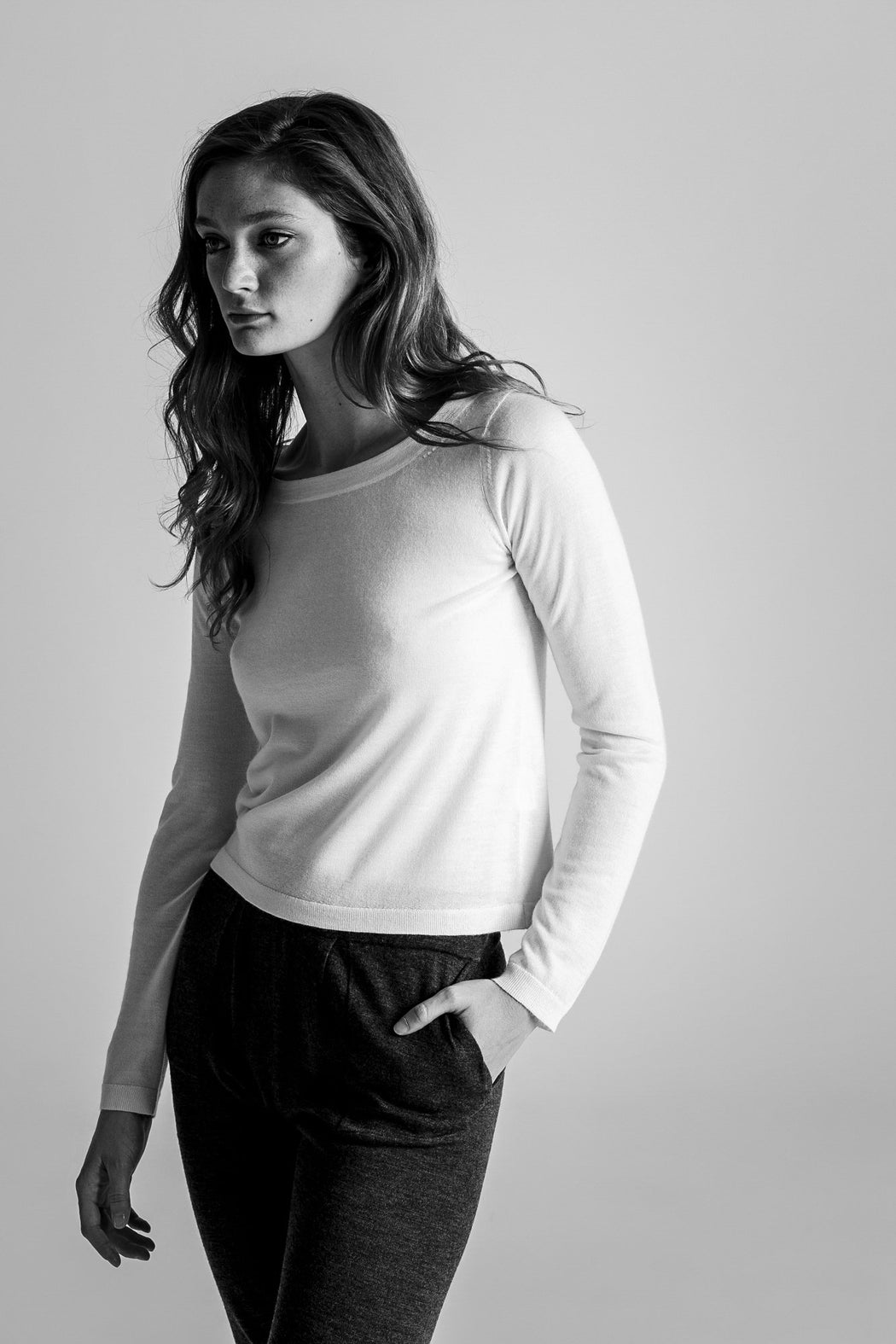 This short jewel neck top is not short of softness. This knit is made with the most prestigious blend in the world: 15-micron cashmere (70%) and mulberry silk (30%). The secret lies in the finishing technique of this worsted yarn (exclusive to the best yarn maker in Italy), resulting in a flawless, even finish. This pullover will feel the closest to you, and for every occasion.