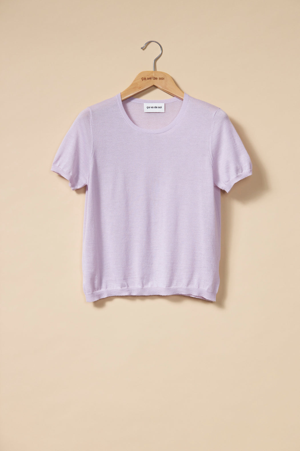 This short sleeve crewneck knit is made of pure 15-micron cashmere. An exceptional down, the result of a meticulous sorting that only aims to retain the longest, whitest and finest fibres. The flawless beauty and elegance of this ultra-fine yarn knitted in such a fine gauge is matched only by the pleasure of its soft warmth on the skin. An iconic piece to be worn from fall through spring, and just as practical on chilly summer evenings. We produced this knit in two accent colors.