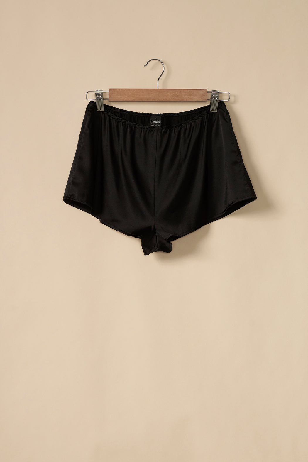 These flowy little shorts are made of pure Mulberry silk. It slips under a dress or a skirt, can be worn to sleep or with a cosy sweater to cocoon… Like a caress thanks to the luxurious feel of silk which glides over the skin. The process of spinning and winding of this satin weave comes from the coupling of multitudes of filaments twisted and folded together creating an exceptional product of great purity and durability.