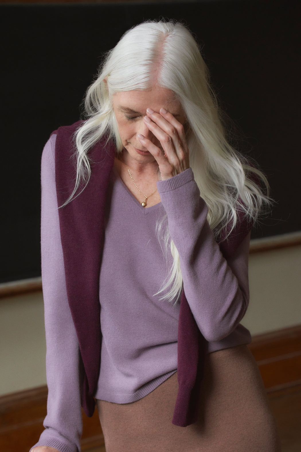 Knitted in carded merino wool, spun expressly in Italy for ça va de soi, whose extrafine (15.5-micron) and ultra-long fibre (a guarantee of longevity and beauty) gives the impression of wearing a cozy cloud — an emotional and intelligent material that understands one’s body language.