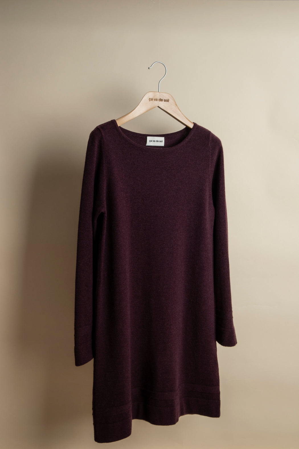 Knitted in carded merino wool, spun expressly in Italy for ça va de soi, whose extrafine (15.5-micron) and ultra-long fibre (a guarantee of longevity and beauty) gives the impression of wearing a cozy cloud — an emotional and intelligent material that understands one’s body language.