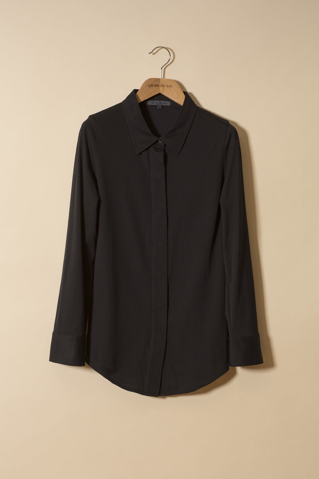 This shirt is made of a pure Egyptian mako Giza-70 cotton. Airy, minimalist superfine jersey, feels like a fine poplin that envelops the body with sensual softness. A graceful yarn that holds its own at ultra-chic evening events or slips discreetly beneath a pullover or jacket.