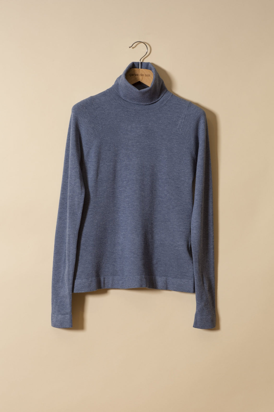 This fitted turtleneck pullover is made of Viscose, a natural fibre made from wood pulp. ça va de soi works only with the best, found in Italy. When combined with Élité, viscose drapes the body’s curves with a sensuality and suppleness reminiscent of silk. It is comfortable, soft, durable, shape-holding and virtually wrinkle-free.