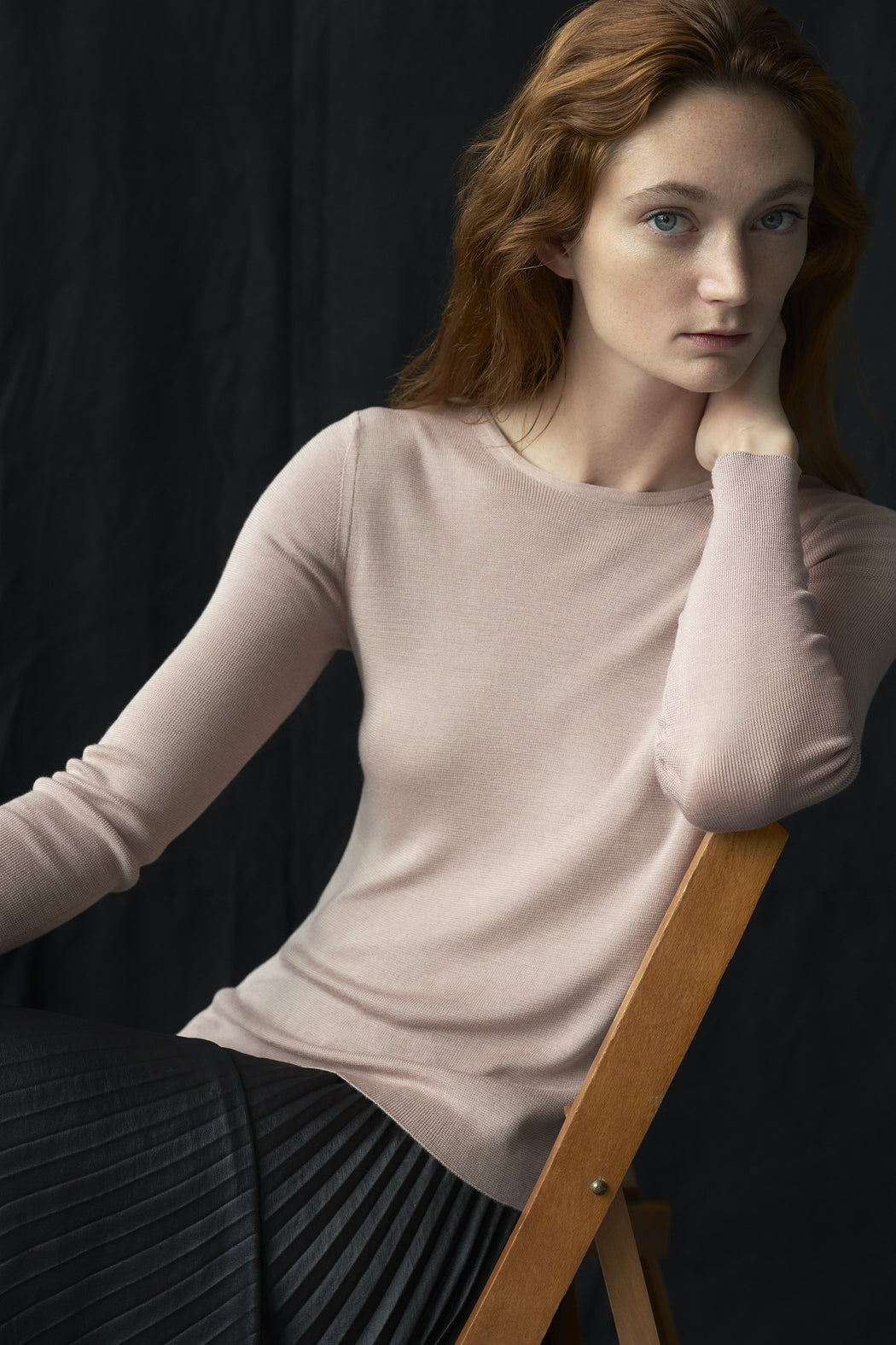 Here is a crewneck that will add a touch of timeless élégance to all your outfits, making it versatile for both formal occasions and casual outings. The slightly cropped line adds a touch of modernity to the piece, to be worn year-round. If you are a crewneck person, indulge in this pure silk, second-skin classic!