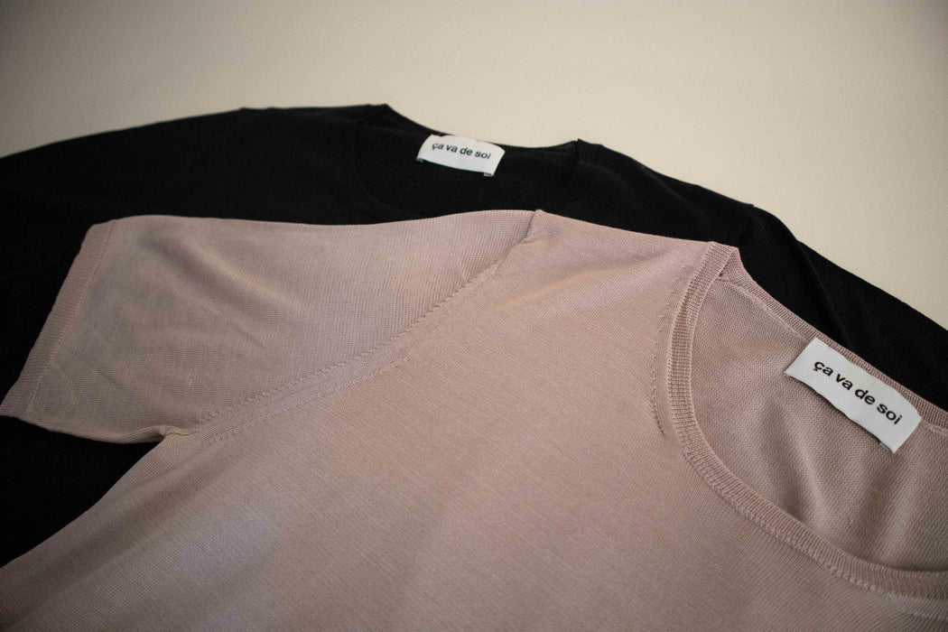 This style is part of a first for ça va de soi: 100% silk ! A silk collection knit in double 120 thread, combining sensuality, intimacy, and comfort. Lightweight and offering an incredibly soft touch, silk keeps you warm in the winter and cool in the summer. The silk protein contains 18 amino acids that help stimulate collagen production in the skin along with possessing hypoallergenic qualities. The silk is produced by the Bombyx silkworm which feeds on mulberry leaves, hence its name «mulberry silk. »