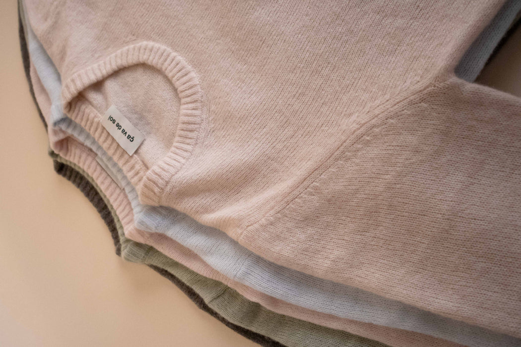 Daring to brush cashmere of this quality is a bold choice, considering that brushing is a technique typically applied to less precious yarns… This unique expertise results in an ecceptionally fluffy, air and cozy casher blend that reconnecte us to the ‘70s. The addition of 37% cotton enhances the cashmere’s thermal properties, allowing it to be worn throughout the year, both indoors and outdoors.