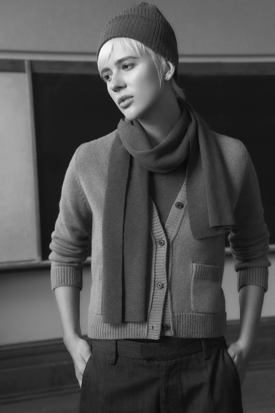 This ribbed, seamless hat, knitted in extrafine Super 160 merino wool has become a classic of the house. Timeless, unisex and stylish. It can be worn higher, lower or in between, tucked in or not, all year round and everywhere, except maybe at the opera! In order to counter the extreme cold, ça va de soi knitted it twice.