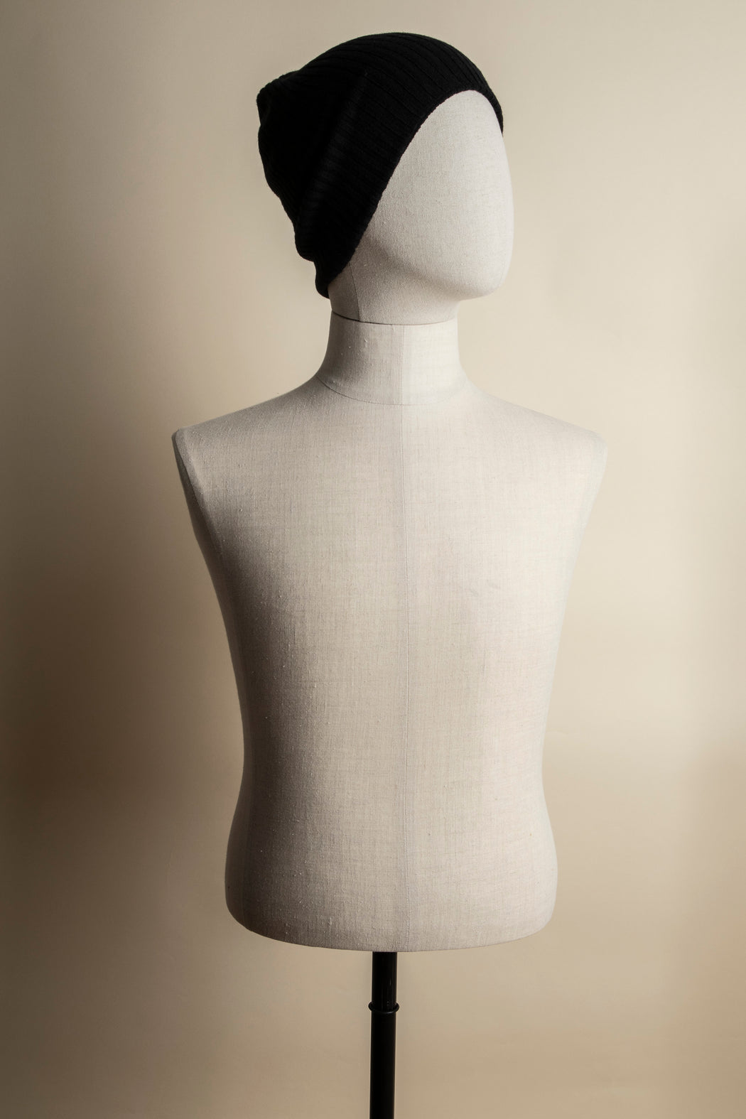 This ribbed, seamless hat, knitted in extrafine Super 160 merino wool has become a classic of the house. Timeless, unisex and stylish. It can be worn higher, lower or in between, tucked in or not, all year round and everywhere, except maybe at the opera! In order to counter the extreme cold, ça va de soi knitted it twice.