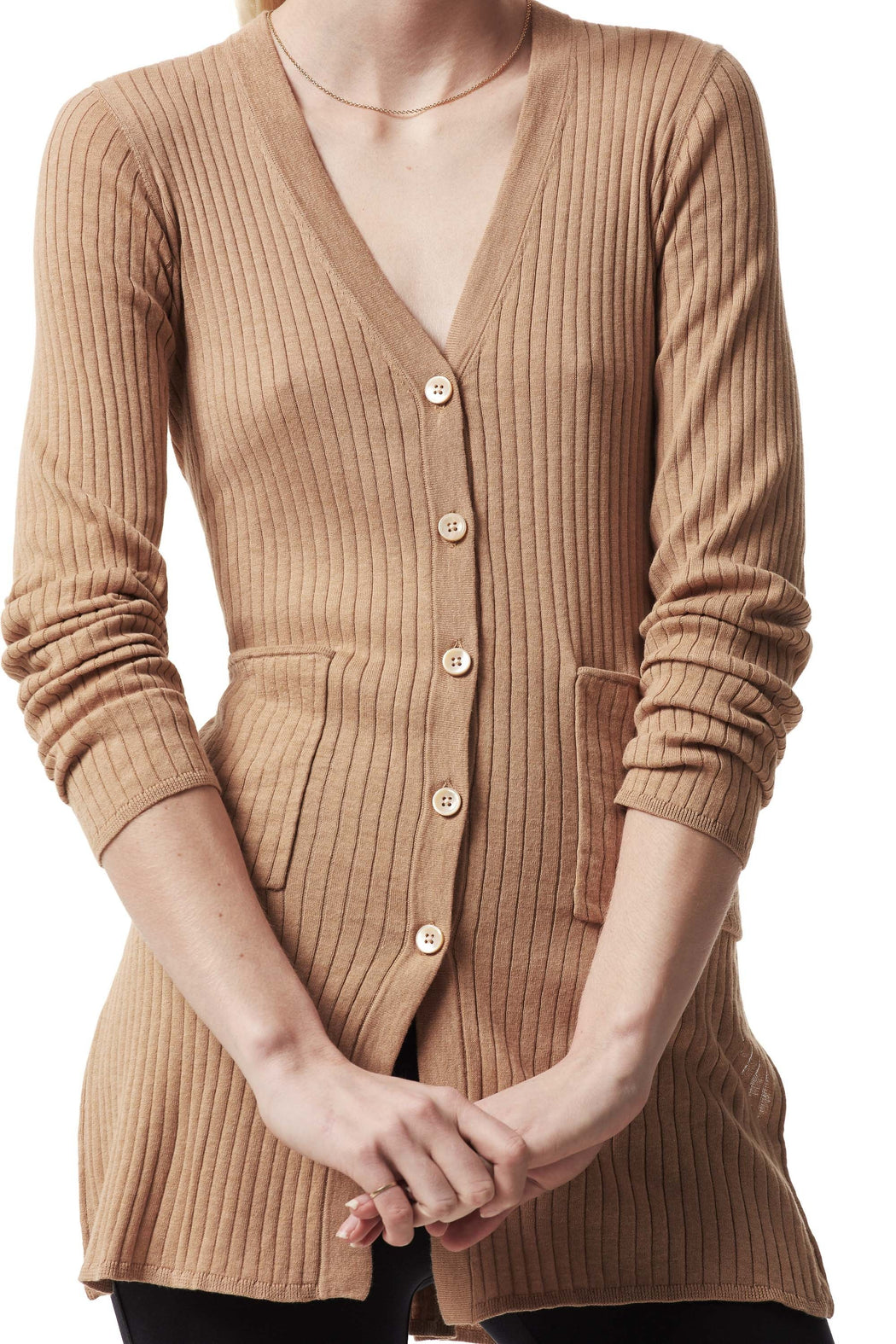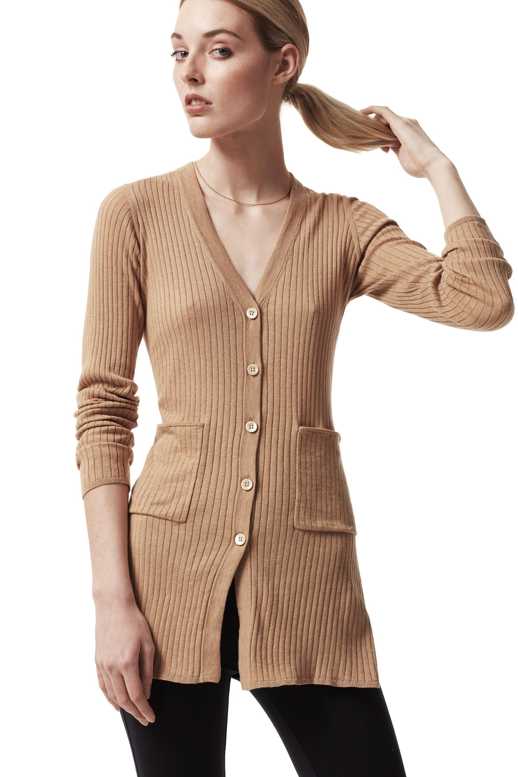Slitted rib V-neck cardigan