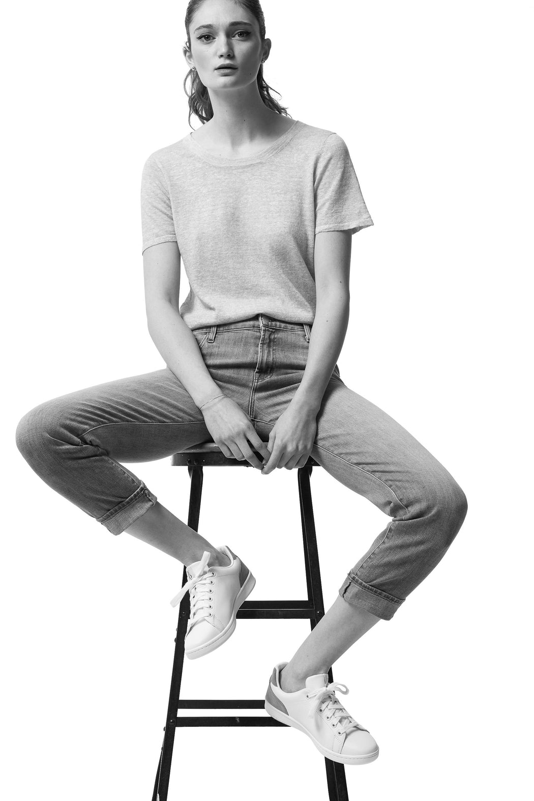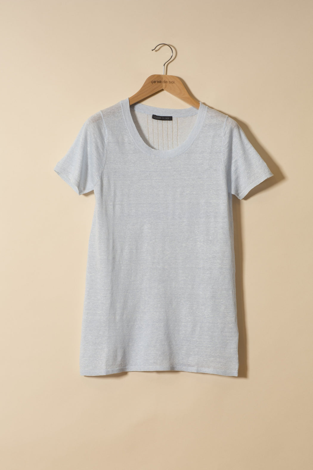 This short sleeve sweater is made of an Egyptian cotton and linen blend. The pointelle detail in the back adds breathability to the piece for hot summer days. This fibre that we call ‘the summer duo’ exudes comfort and elegance in the warmest, most humid of temperatures. The combination of fibres naturally exhibits a vintage look and is the basis of unique pieces ideal for warmer weather. The linen has an unmatched ability to absorb moisture.