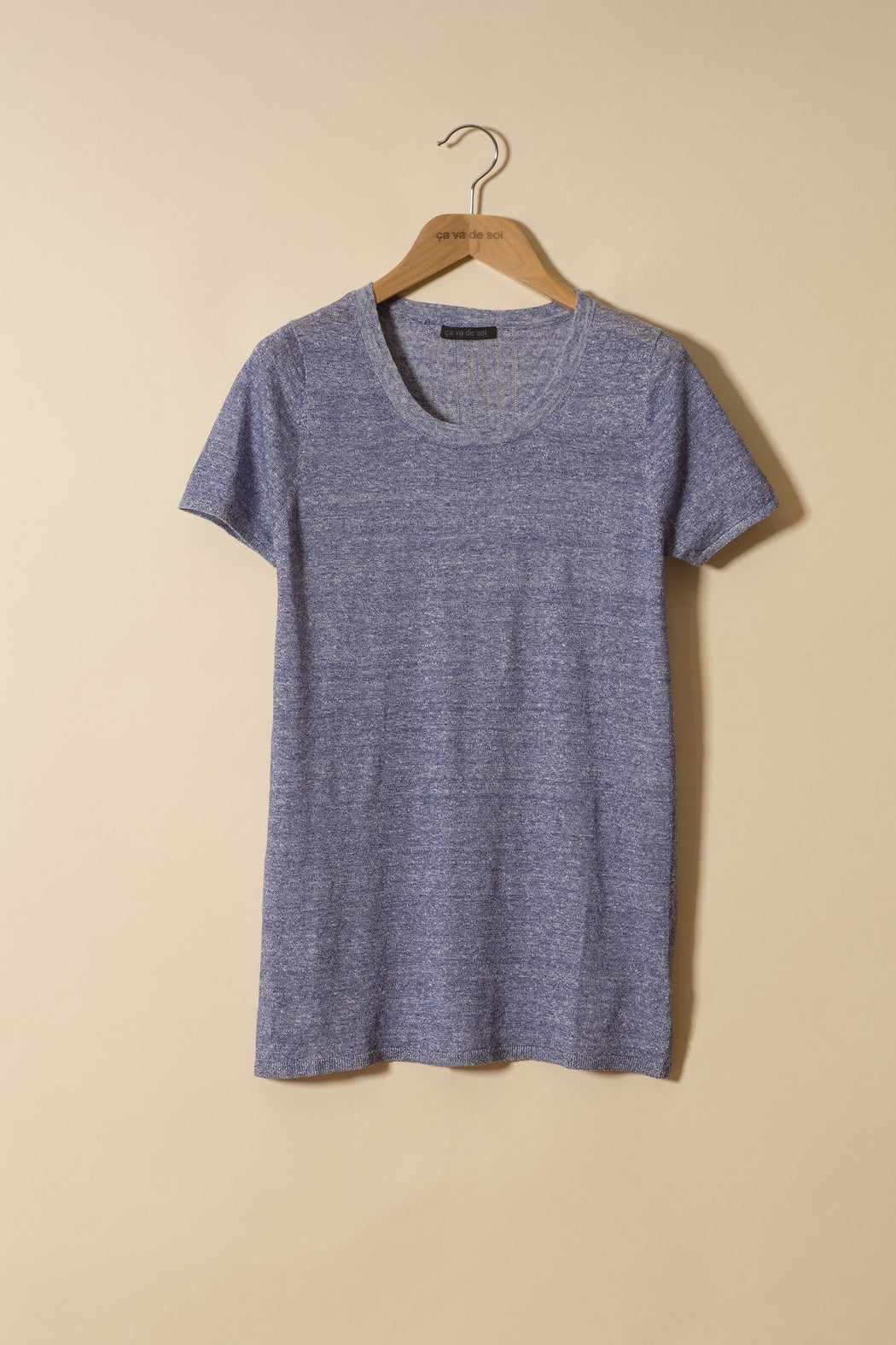 This short sleeve sweater is made of an Egyptian cotton and linen blend. The pointelle detail in the back adds breathability to the piece for hot summer days. This fibre that we call ‘the summer duo’ exudes comfort and elegance in the warmest, most humid of temperatures. The combination of fibres naturally exhibits a vintage look and is the basis of unique pieces ideal for warmer weather. The linen has an unmatched ability to absorb moisture.