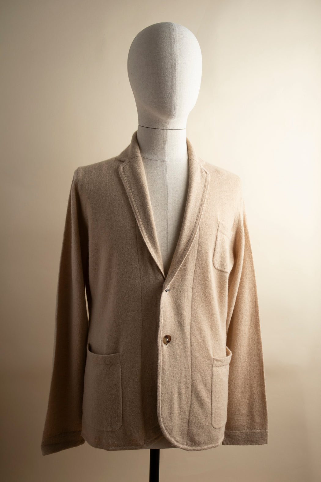 Halfway between an artist’s jacket and a traditional French bleu de travail, this piece carries a distinctly Parisian flair. Practical with its three large patch pockets and a small back vent for ease of movement, it features tubular finishes at the collar and cuffs, while the turtoise shell-effect horn buttons add character and understated elegance. All the comfort of knitwear, with no compromise on style !