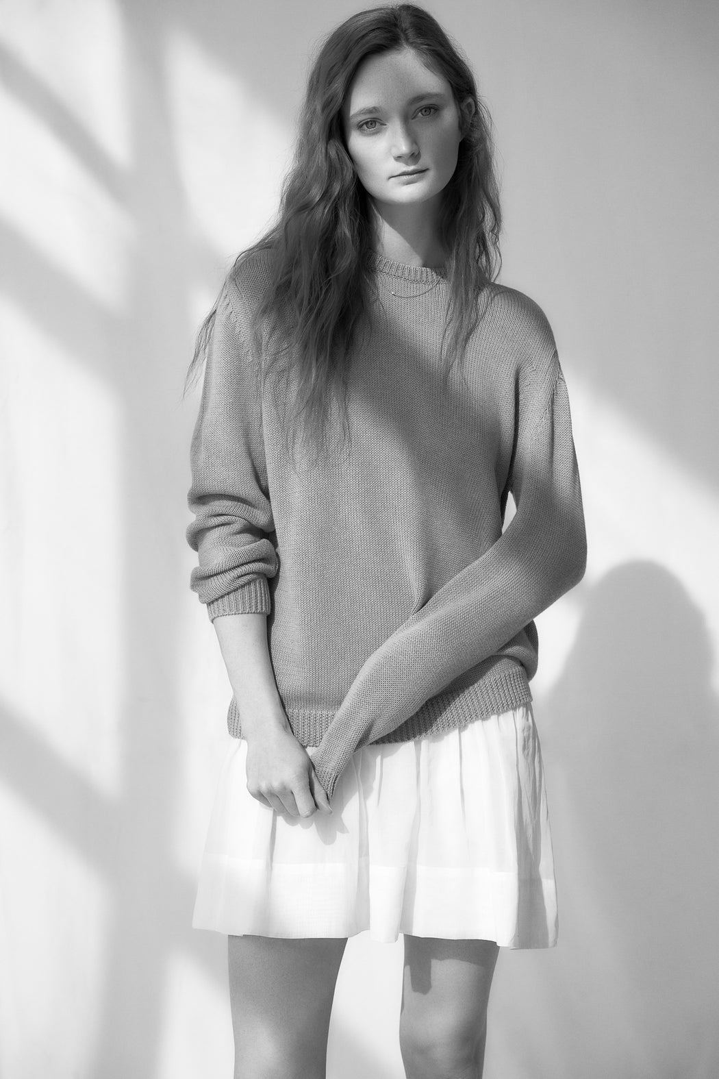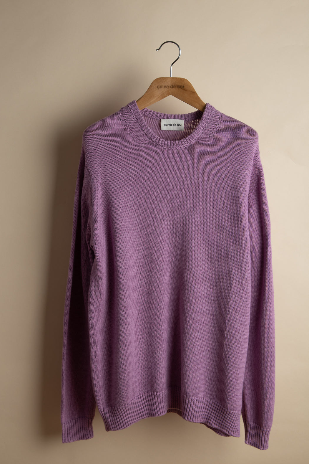 Its loose knitting in 7 gauge brings a real sense of lightness while remaining cozy... Unisex and classic, both in its details and silhouette, its very slightly scooped neckline offers a relaxed look. We particularly love the detail of the needle reductions at the armhole, as well as the ribs on the sleeves and bottom.