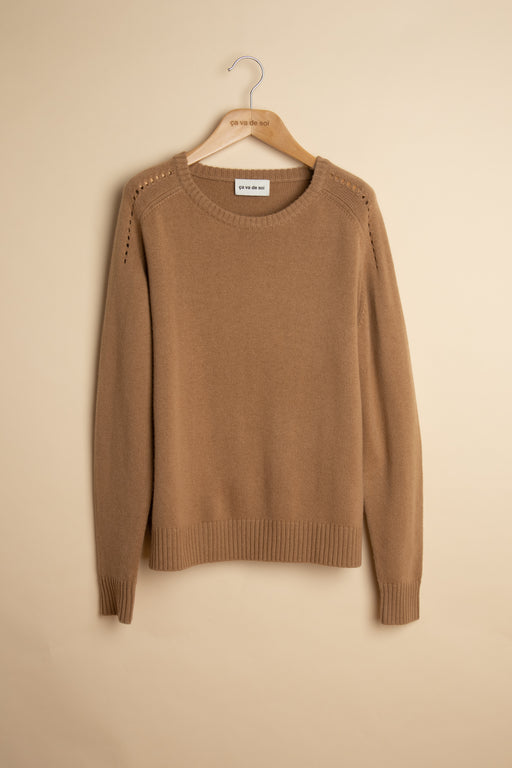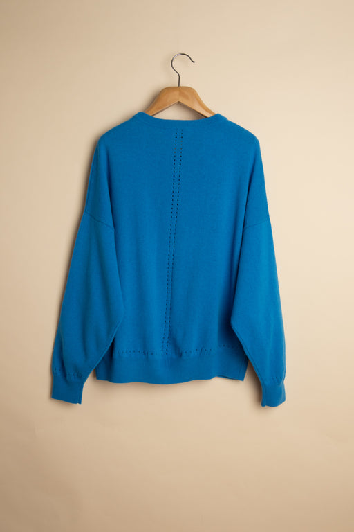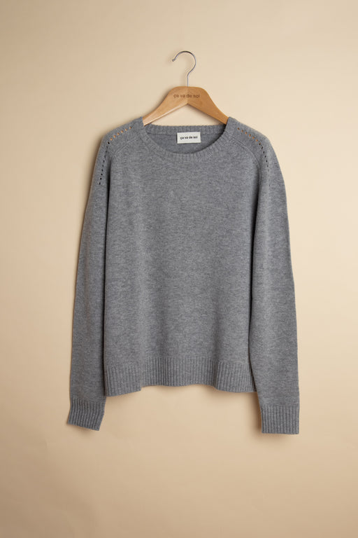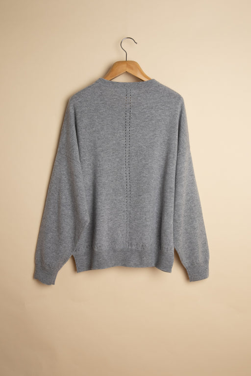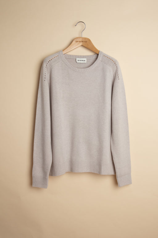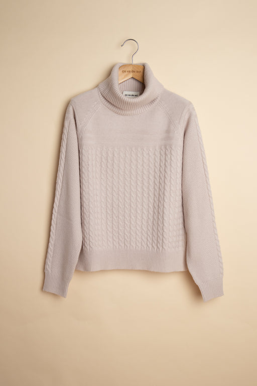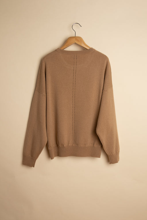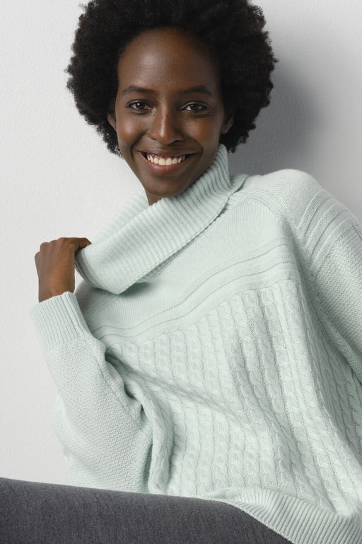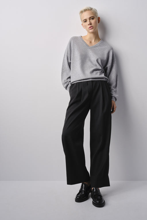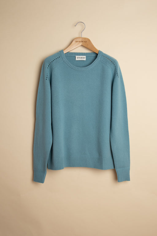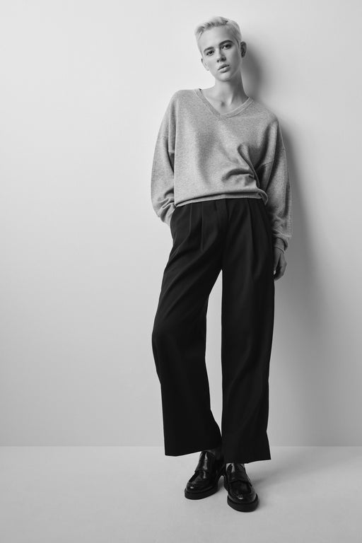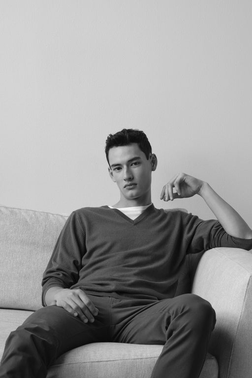Thanks to a revolutionary carding process, this fine and long wool fibre breathes and stretches to unfold its splendour. The result allowed us to design knits in this comfortable wool mist. It is light, warm and thermal.