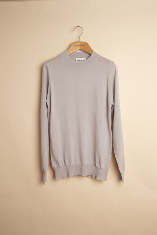 Super 120 worsted merino wool with extra long staples that adapts to the environment and the body. ça va de soi has chosen this material for its timeless and thermal appeal to be worn directly on the skin, in all circumstances.
