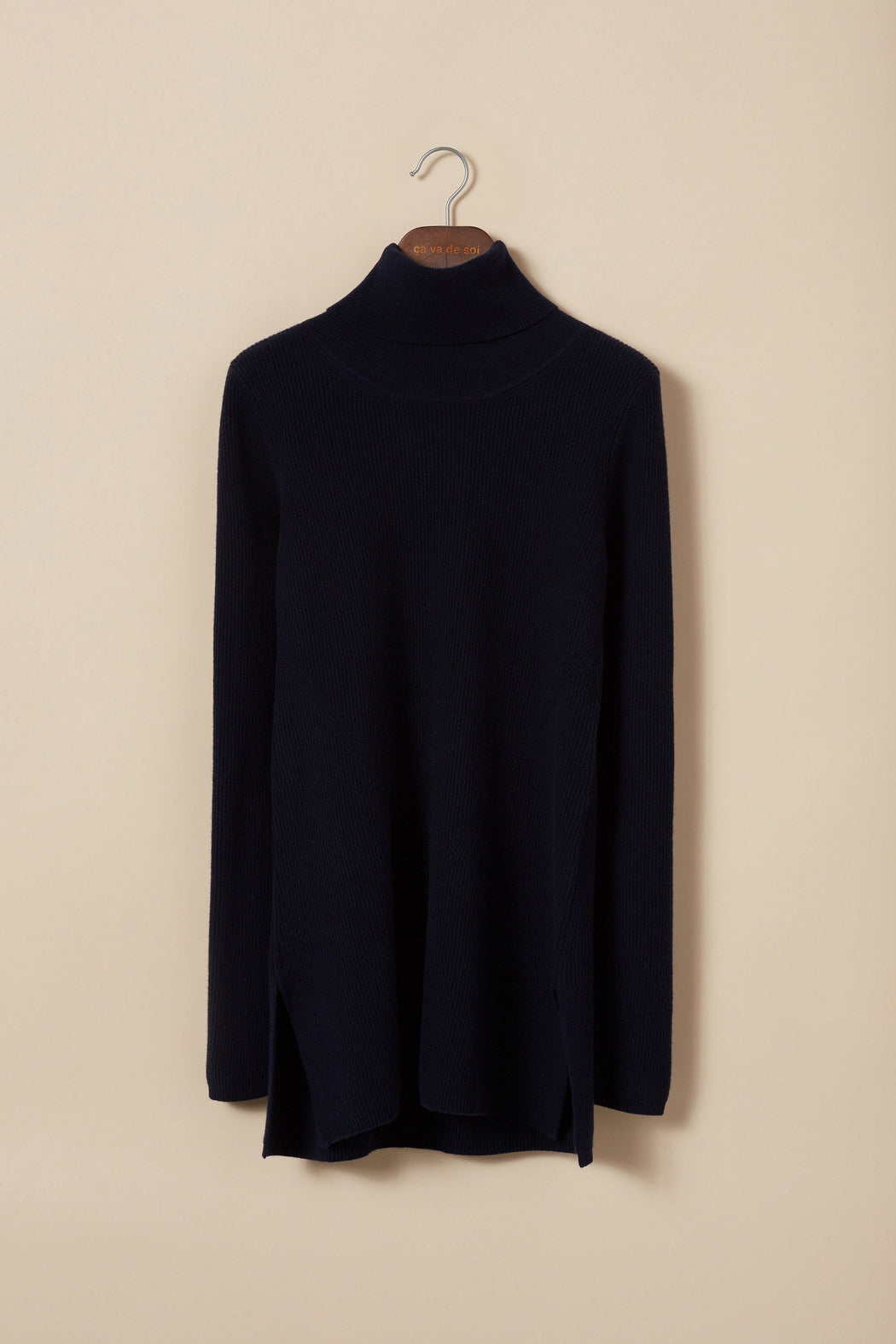 A close look at the expertly reduced stitching below the bust, the meticulous detail of the armholes and neckline is all it takes to see why the Saint-Sulpice, this long, cinched sweater with short, lateral openings is so flattering. But the true champion, the Super 160 merino carded wool, wins with its very lightly felted but airy texture, hand-made feel. Its perfectly calibrated power to warm is another good reason to choose it. It comes in Black, Sapphire, Caviar or Pearl.