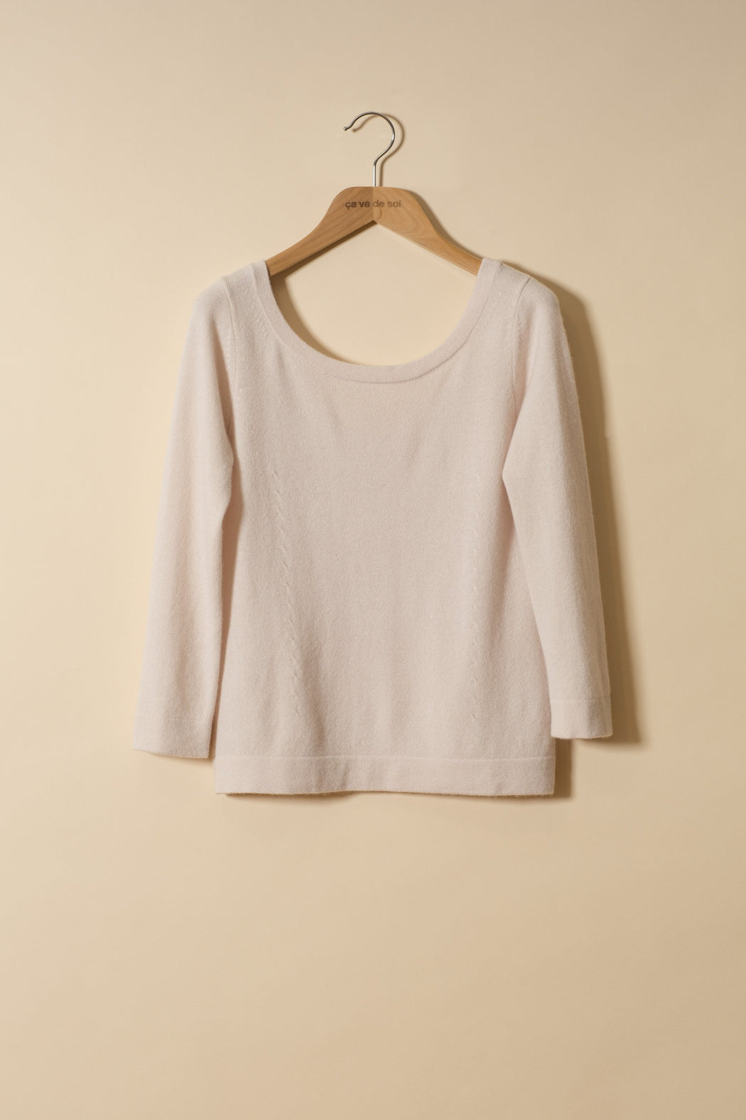 This sweater is made of pure Alashan cashmere, an exceptional down obtained by meticulous sorting of the fibres to retain only the longest and finest. The flawless beauty and elegance of this rare yarn are matched only by the pleasure of its soft warmth on the skin.