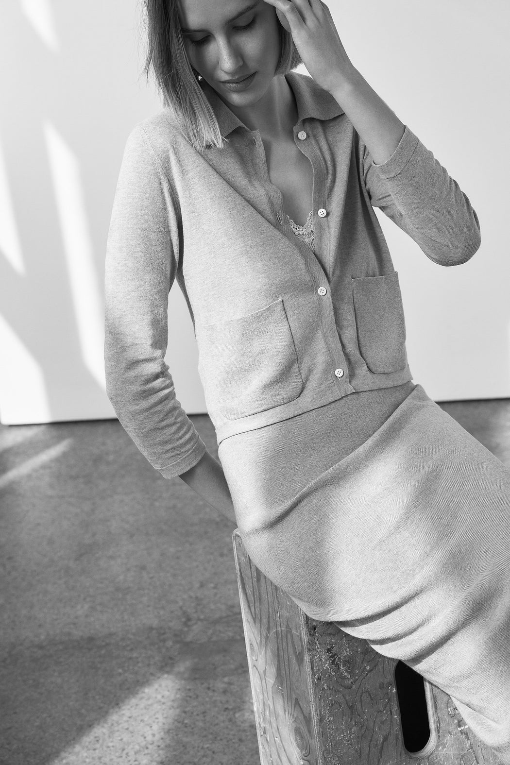 Its cleverly studied proportions allow it to be worn over a dress, skirt or trousers to create the tailored effect.