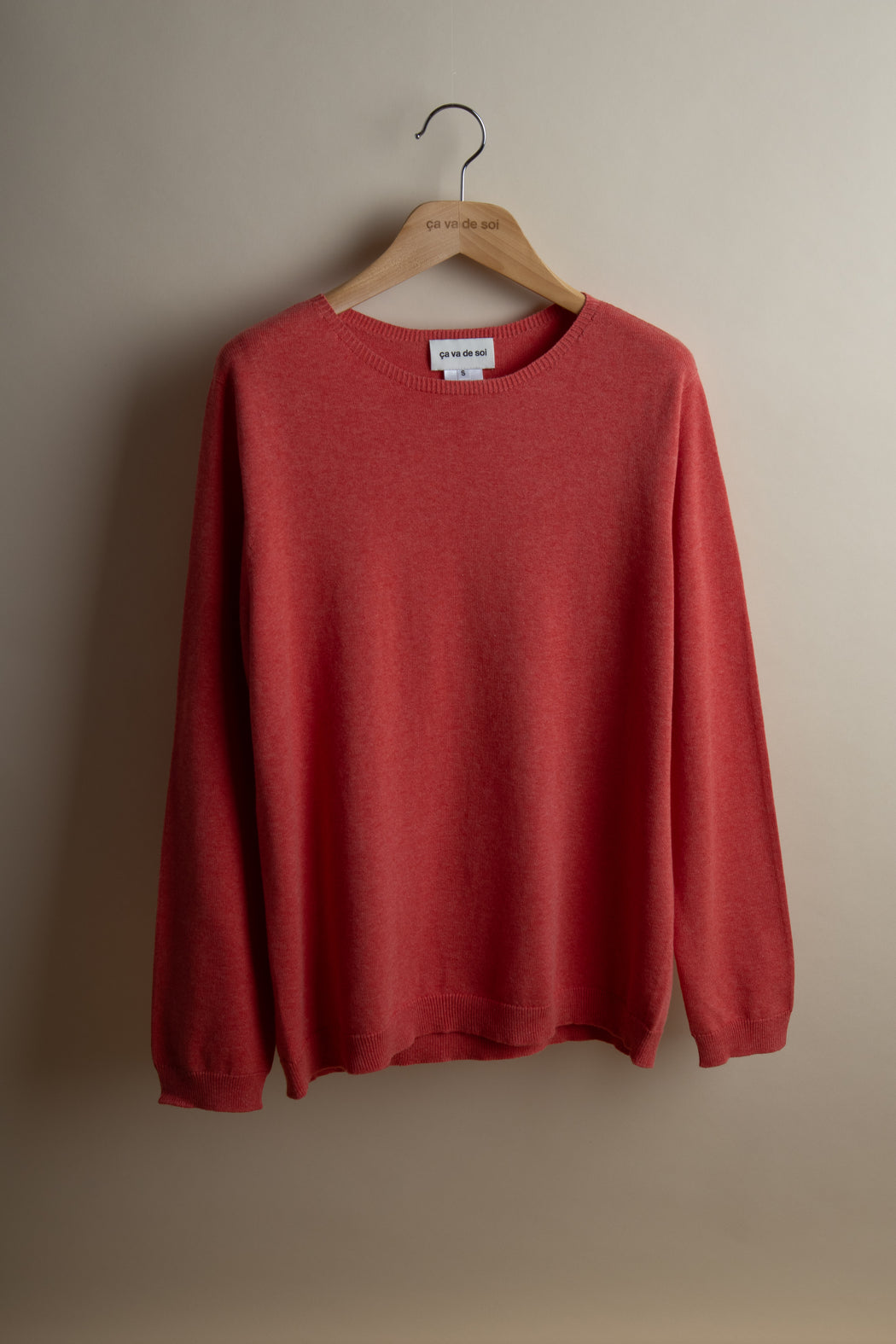 Each colour of this knit is dyed by skeins directly onto the yarn before spinning, using vegetable pigments and natural agents for fixation, creating depth and uniqueness to the colours.
