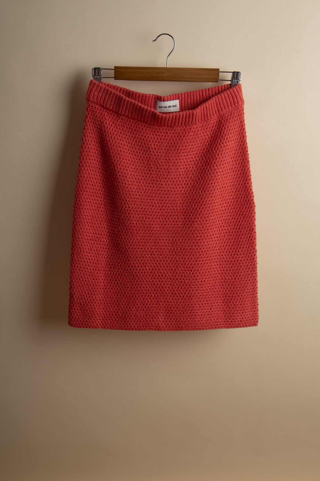 This standout piece in our summer cotton collection is exceptionally chic because of the honeycomb knit, also known as the waffle stitch, which offers day-long comfort without compromising on style. It brings to mind the silhouettes of Milanese women strolling along the Navigli… Just-above-the-knee length, it is a hallmark of elegance, and features an elastic waistband to guarantee added comfort. Paired perfectly with the LYALL cardigan for an ultra-sophisticated twin-set.