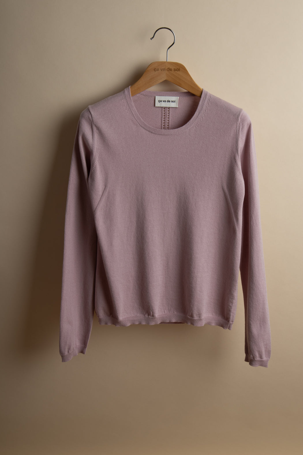Somewhere between a long-sleeved tee and a mid-season knit, Lautrec is a feminine classic, that features a delicate openwork line at the back, reminiscent of English embroidery. With a straight fit, a tubular knitted neckline, and subtle darts at the bust, it offers effortless style and comfort.