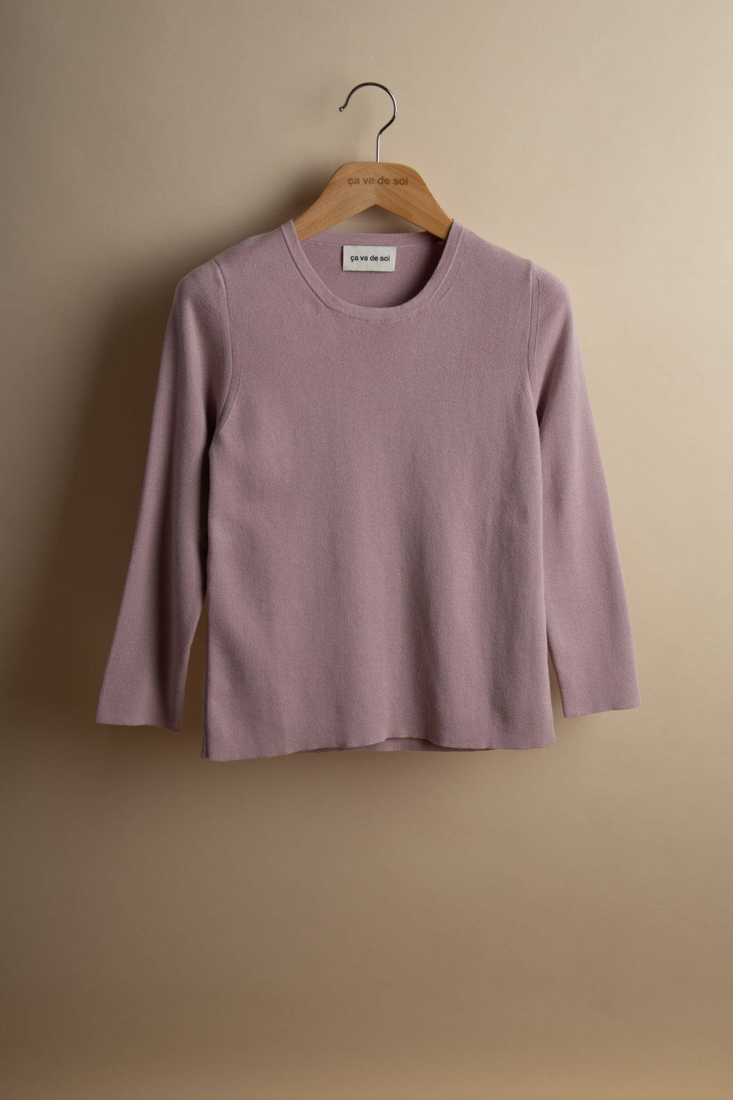 Manet is a timeless essential that highlights your femininity with subtle elegance. Its 1x1 rib knit ensures excellent opacity, while the straight cut, classic crew neck, and tubular-knitted edges at the sleeves and hem, create a clean, minimalist silhouette. The charming bracelet-length sleeves add a signature touch of refined style.