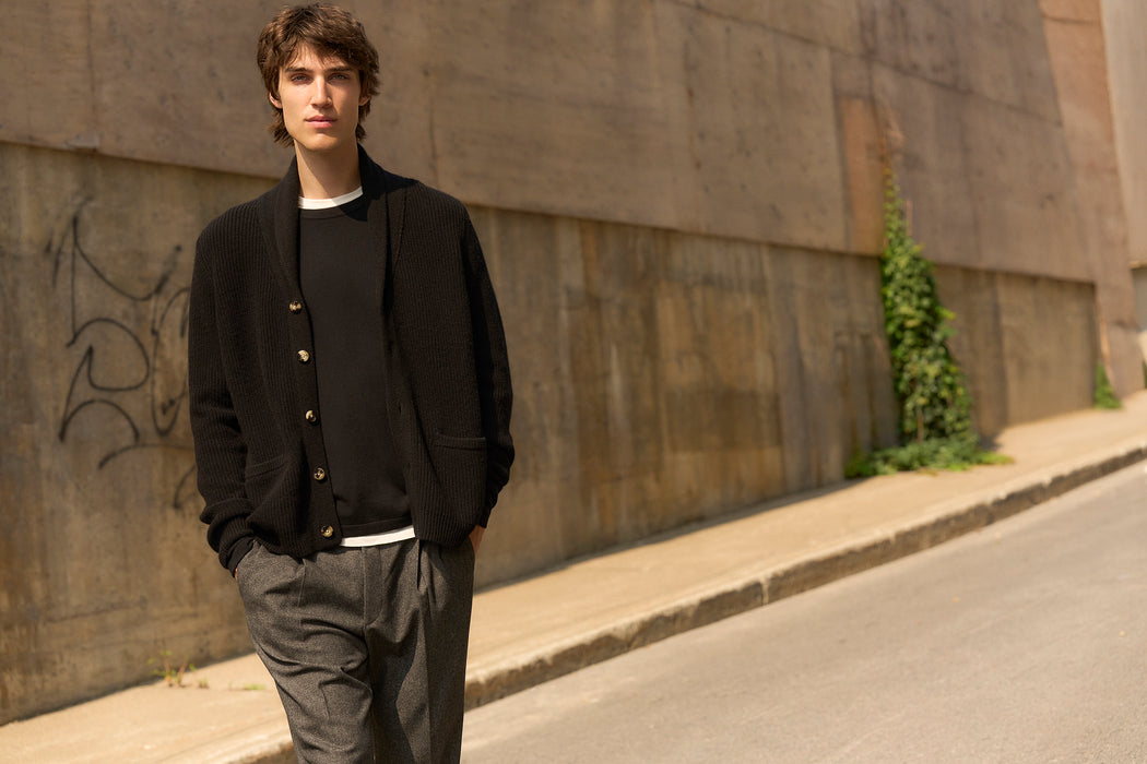 The shawl-collar cardigan
