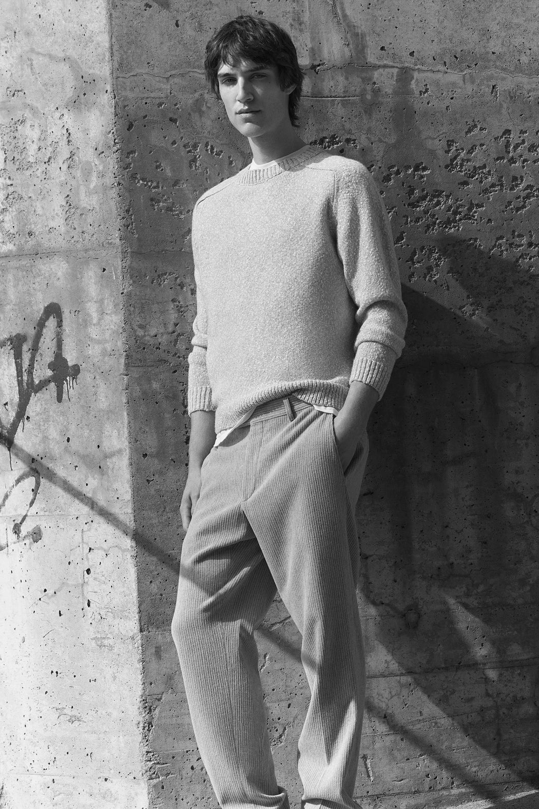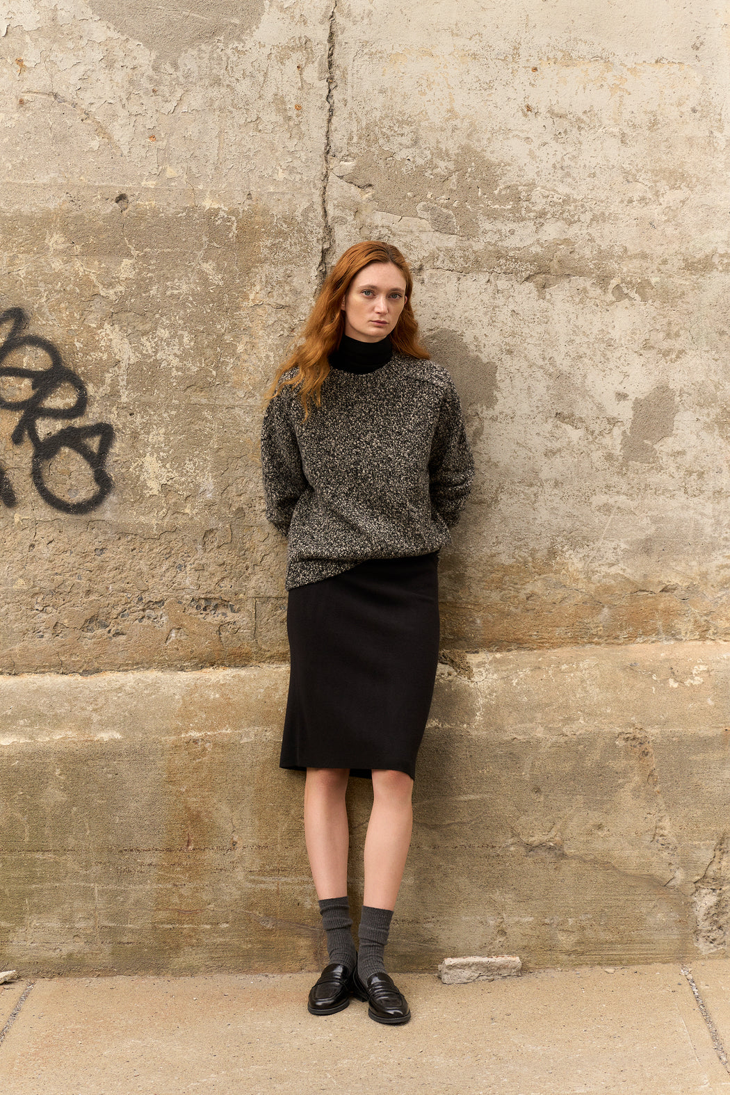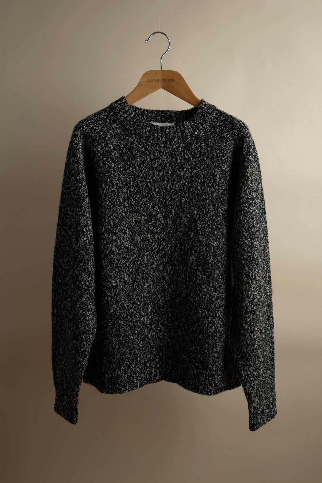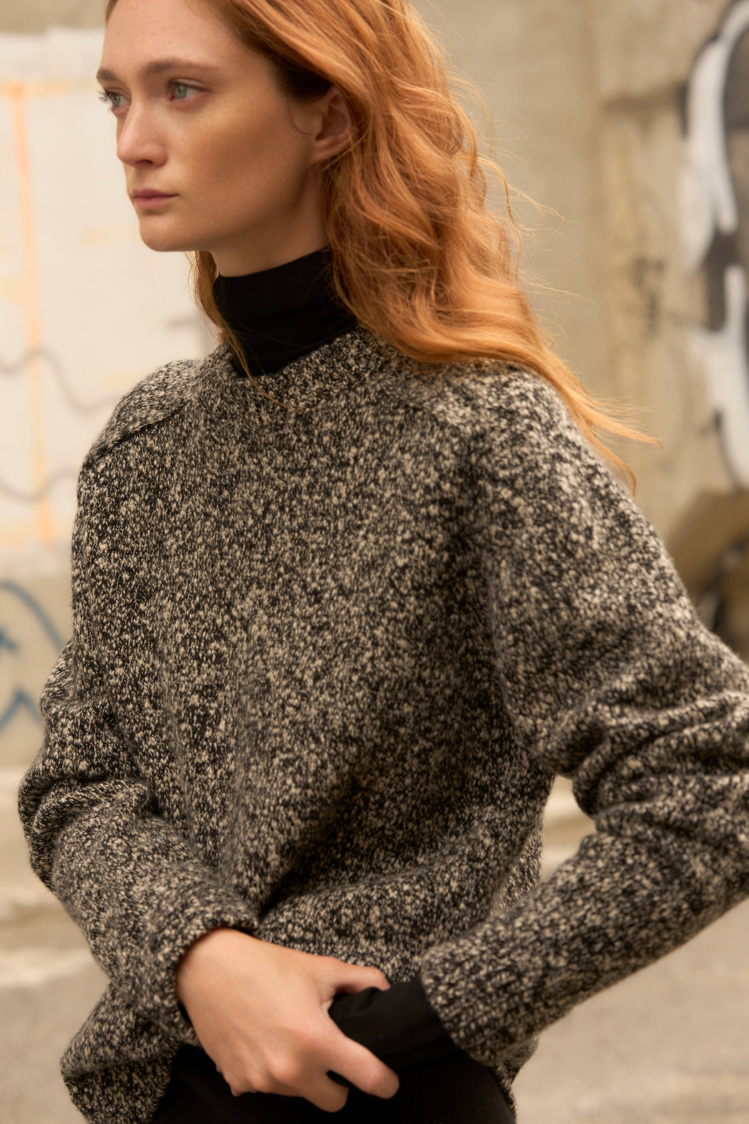 Knitted in lambswool with a blade thread, this pullover is a nod to the iconic wool tweeds of the 1920s. A loose, unisex cut brings effortless sophistication. It’s the kind of sweater you love to borrow from your father’s or partner’s wardrobe—or simply claim as your own. With a crew neckline and raglan sleeves, it combines casual style with extra comfort. A true warm and utilitarian pullover, as at home in the mountains as on the high seas—an enduring piece for life.