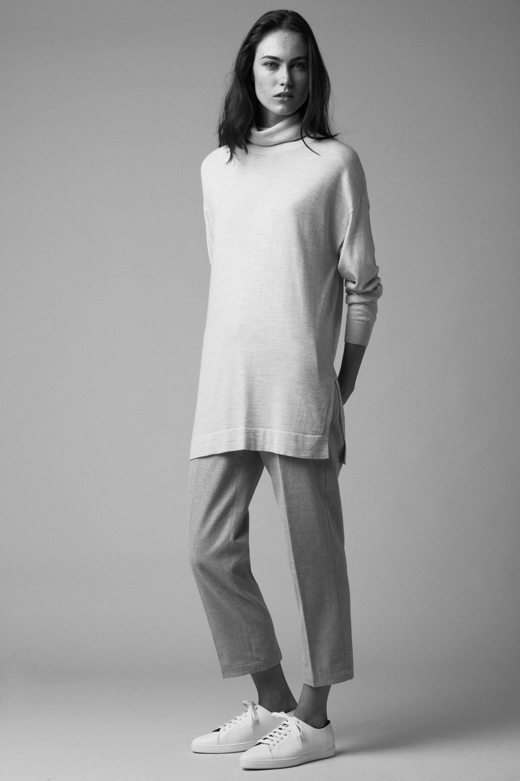 Oversized slitted turtleneck tunic
