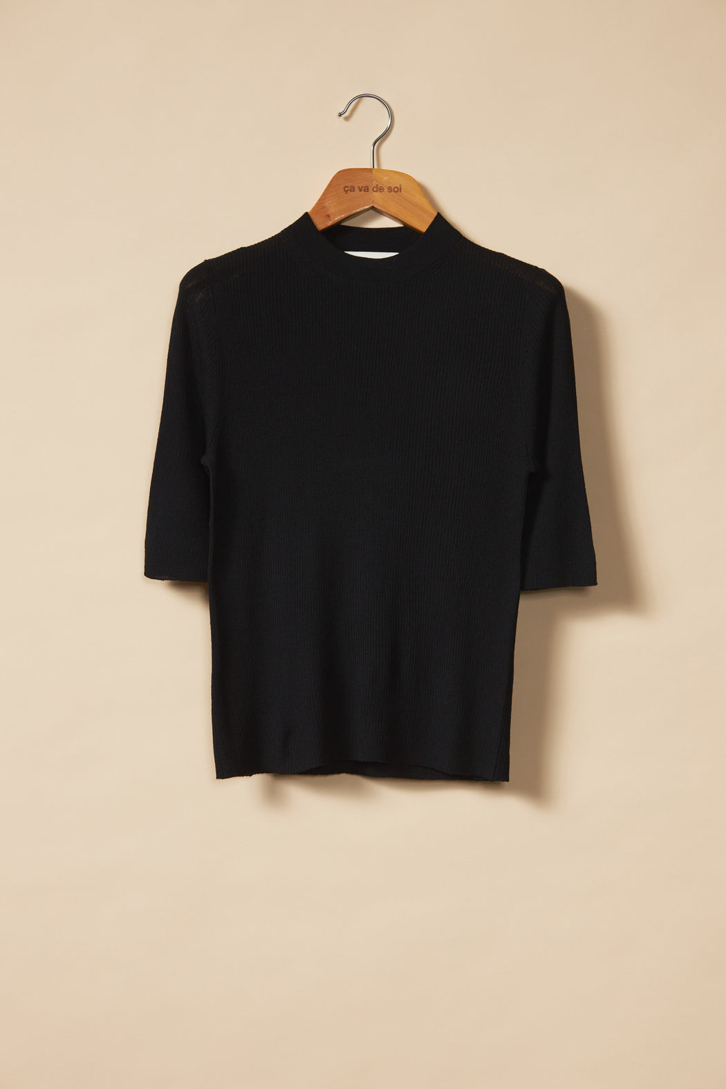 This ultra-fine 2x2 rib mock neck pullover is made with Super 140 merinos wool of a 16.5 micron. Transitional and thermal, ça va de soi uses it for its timeless and thermo-regulating properties. Its softness, lightness and freshness allow you to wear it as an underpinning year round or on its own for ultimate sophistication.