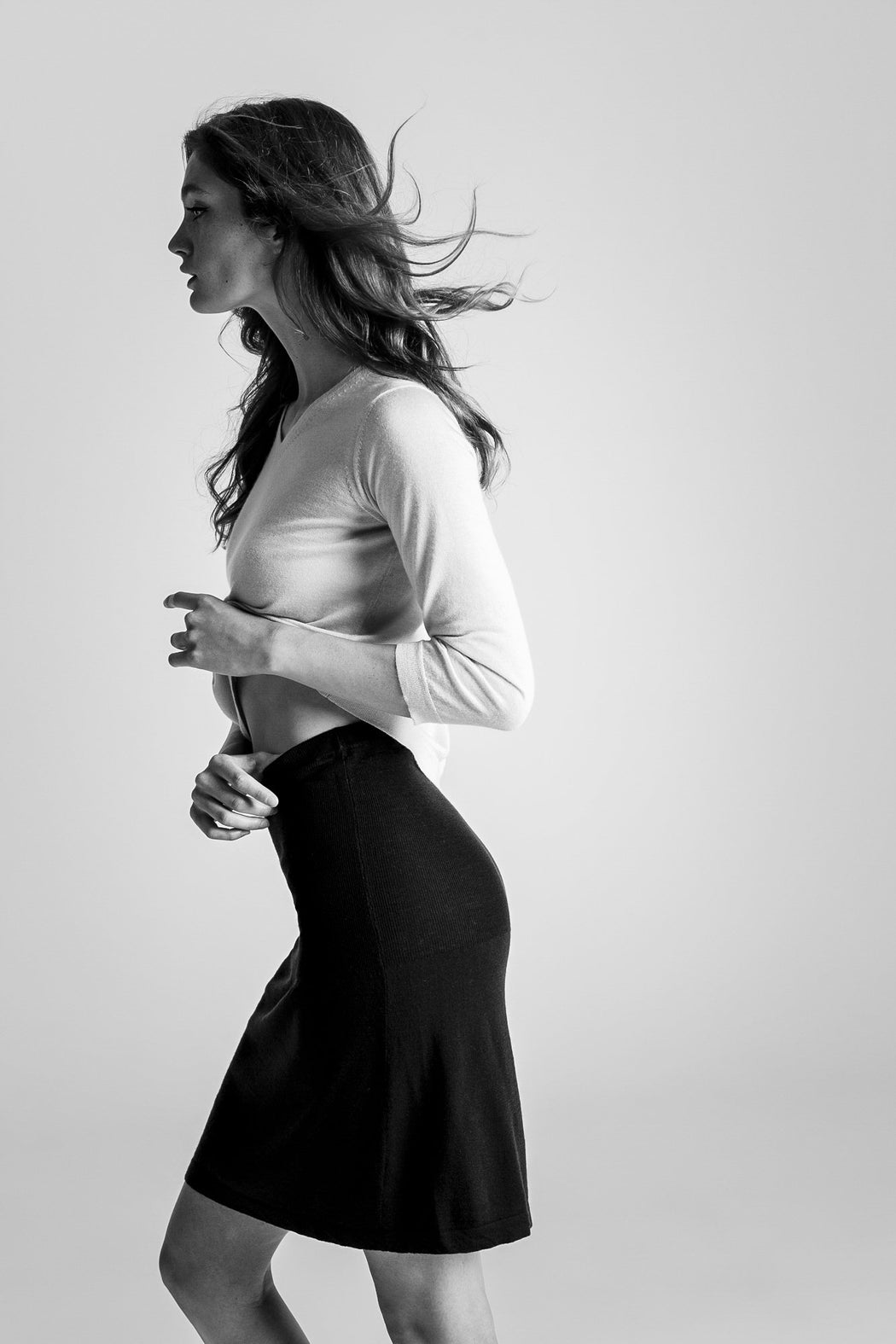 This bell-shaped skirt is made of Super 160 merino wool, a rare highly coveted 15.5 micron Australian wool. This ultra-long staple fibre is enhanced by a finishing technique exclusive to Italy, resulting in a flawless, even finish. Thanks to its temperature-regulating properties, Super 160 merino wool can be worn next to the skin in any season for sheer elegance and comfort.