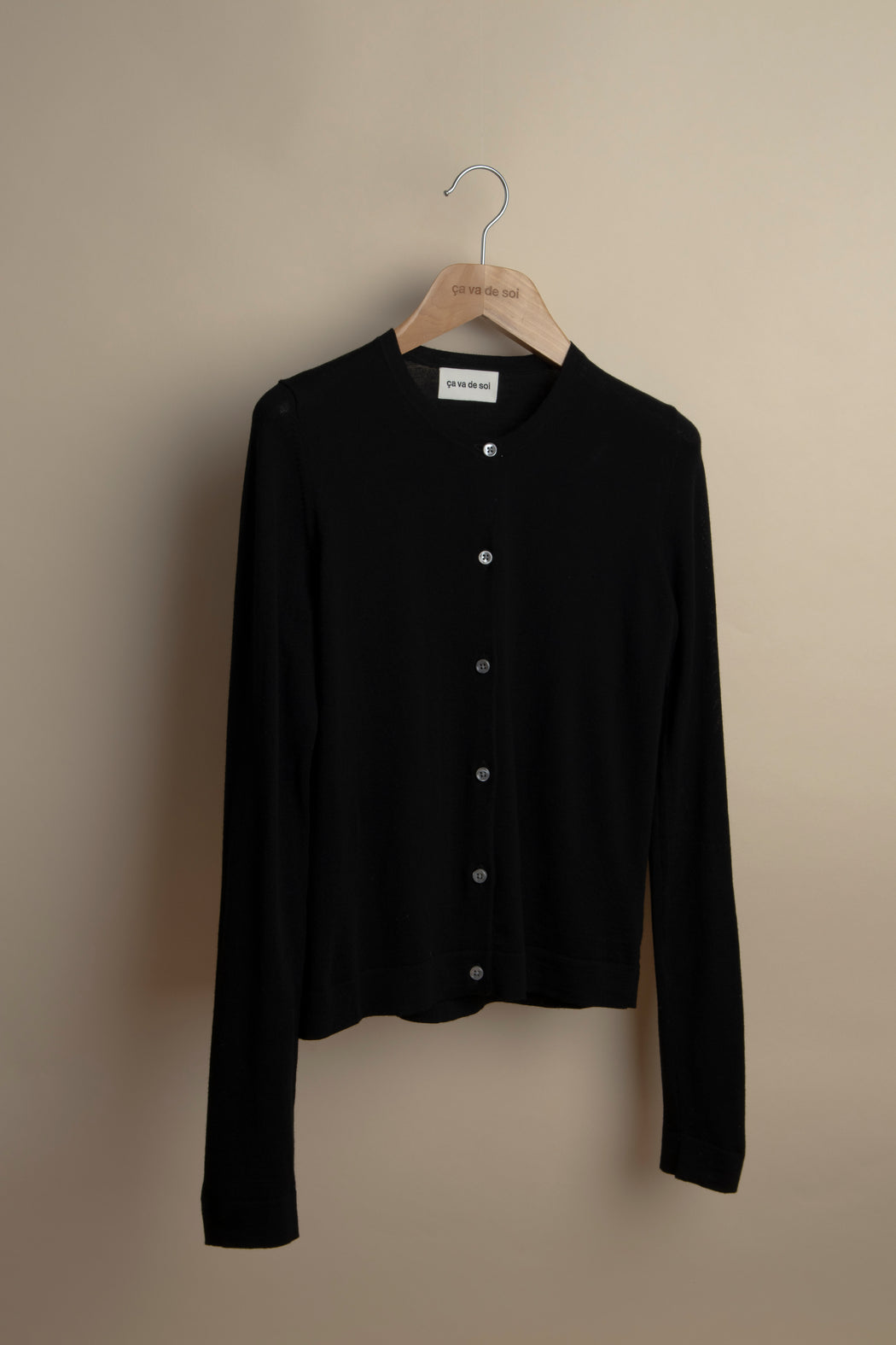 Lucille is THE round-neck cardigan, the epitome of classic and timeless style at *ça va de soi*. With its clean lines and tubular finishes, it adds a modern touch. Whether worn over a little dress or as a twin-set, this cardigan is incredibly versatile, depending on whether you wear it buttoned up or open.