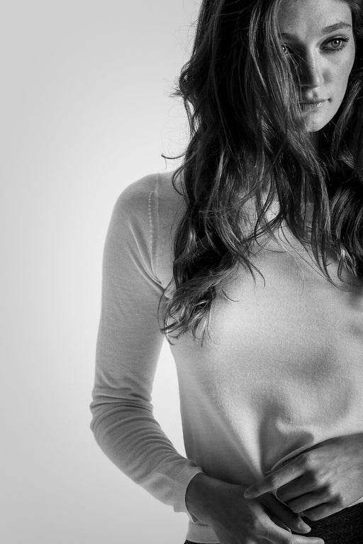 This material is made of pure cashmere from Mongolia, an exceptional down resulting from a meticulous sorting by hand which aims to retain only the longest and finest fibres. The perfect beauty and elegance of this rare yarn are matched only by the pleasure of its soft warmth on the skin.