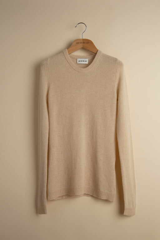 This material is made of pure cashmere from Mongolia, an exceptional down resulting from a meticulous sorting by hand which aims to retain only the longest and finest fibres. The perfect beauty and elegance of this rare yarn are matched only by the pleasure of its soft warmth on the skin.