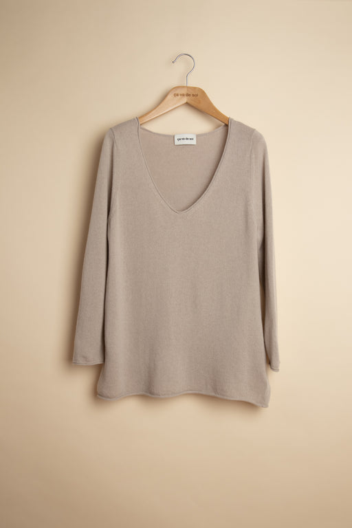This material is made of pure cashmere from Mongolia, an exceptional down resulting from a meticulous sorting by hand which aims to retain only the longest and finest fibres. The perfect beauty and elegance of this rare yarn are matched only by the pleasure of its soft warmth on the skin.