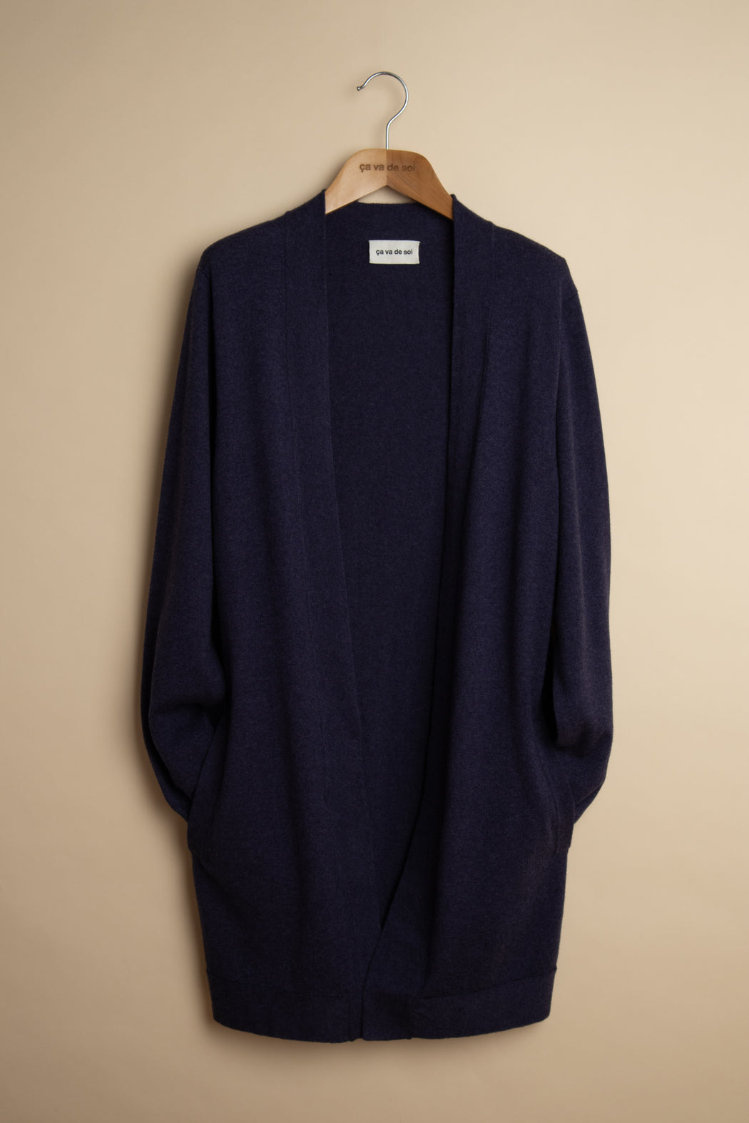 This open cardigan is a jack of all trades. Just put it on and you're ready to go to the office, to a cocktail or to the restaurant and above all, don't forget to put it in your suitcase, or at home when cocooning.