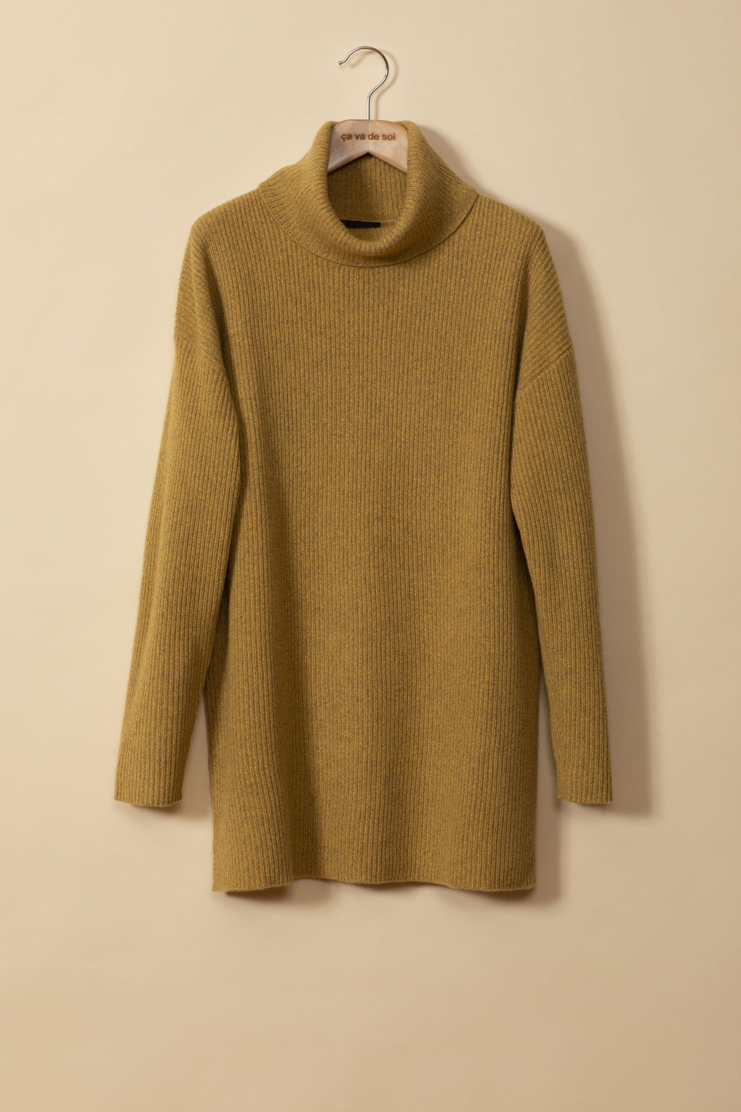 This ribbed turtle teck tunic is pure classic that knows how to bring a casual twist to urban everyday lifestyle. Knitted in a blend of 80% Super 100 wool with 20% cashmere - surprisingly light, the blending of these two fibres feels like you are wearing a cloud. This warm and comforting woolen knit will keep you comfortable in your daily whirlwind of activities thanks to its themoregulating properties. Available in saffron, mustard, oatmeal and turquoise.