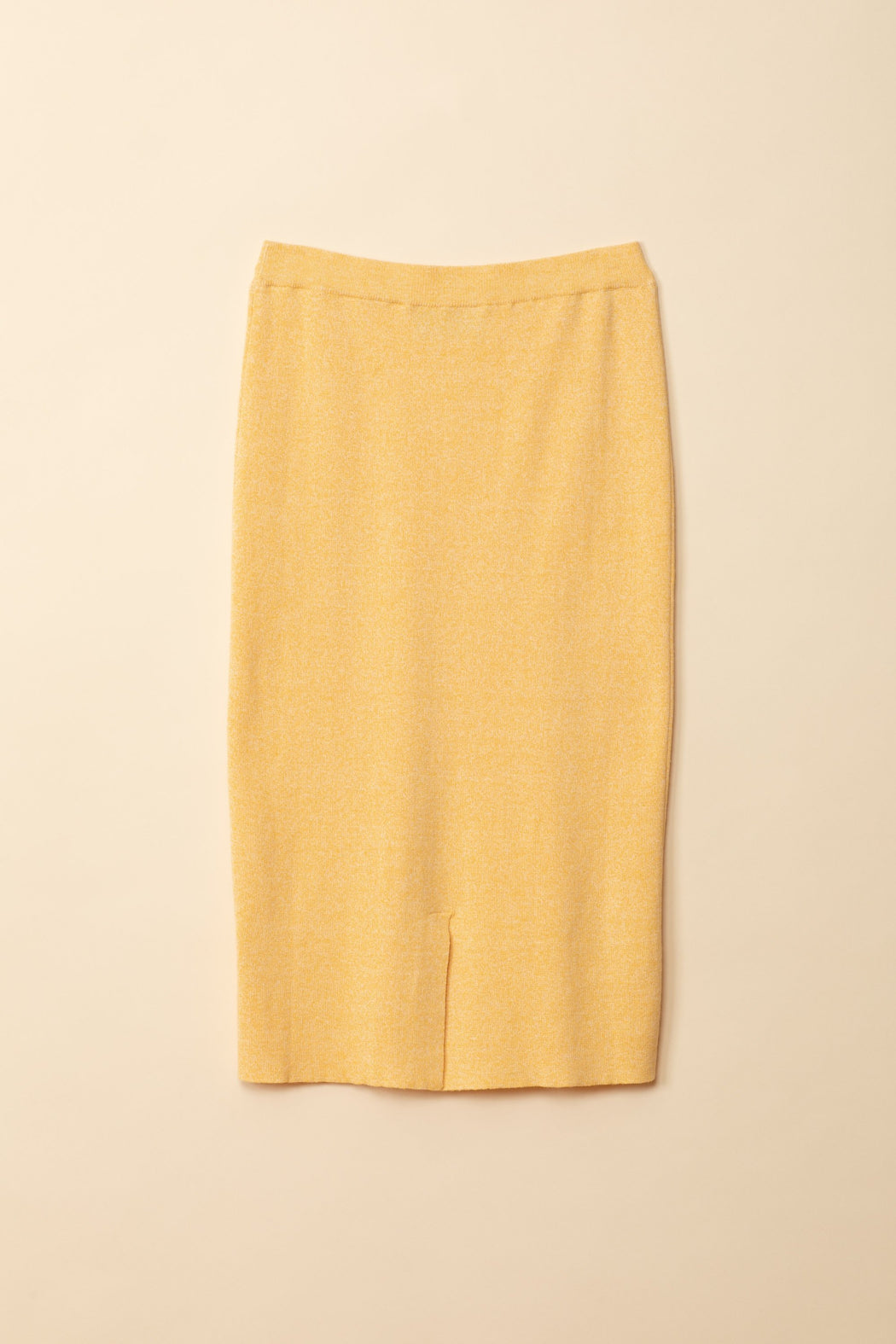 This knee length shall bring a feminine and retro touch to your wardrobe. Whether worn with its matching top or cardigan for a perfect 'Tailleur' allover knit effect , or a casual t-shirt; Palma can comfortably follow you anywhere. Made of a blend composed of a hand harvested extra-long staple Egyptian cotton and a very fine cashmere, this skirt rhymes with natural resistance and softness. The combing process of this yarn eliminates all short fibres, leaving only the sustainable ones, for a long lasting allure and surface. Mixing it with carefully selected cashmere from Hircus goats will give it a silkier and softer appeal. The single yarns are dyed before twisting the yarn to give the finished garment 100% uniformity. We produced this knit in 4 mouliné hues (hank dyed by Italian masters): lemonade, negroni, blue lagoon, mojito.