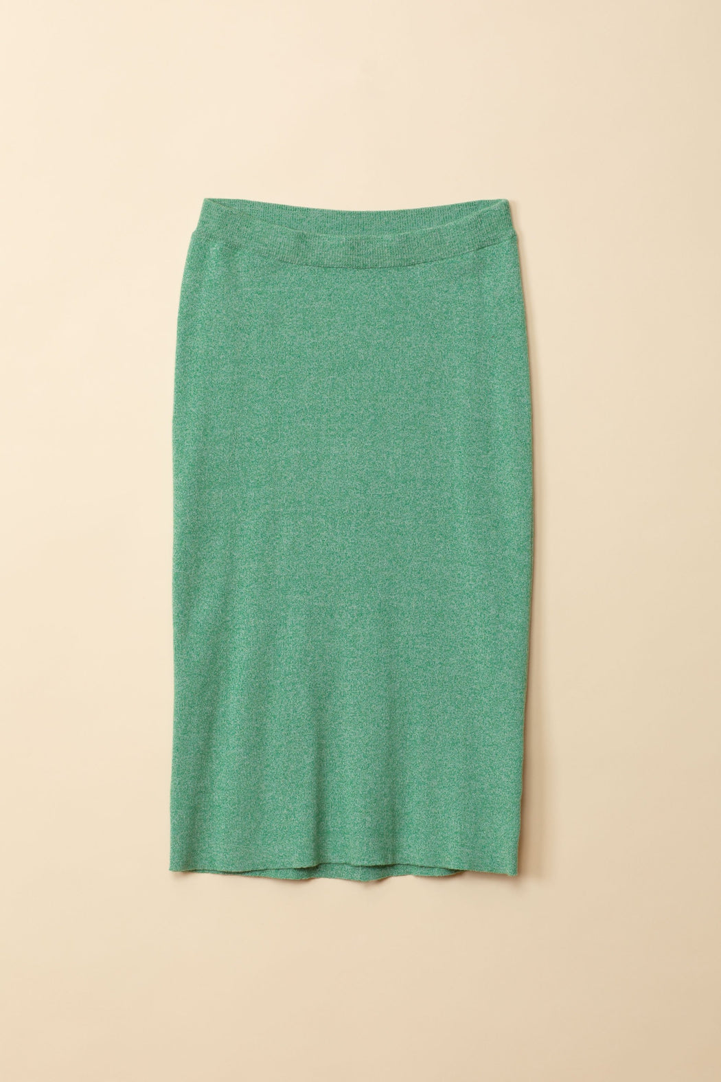 This knee length shall bring a feminine and retro touch to your wardrobe. Whether worn with its matching top or cardigan for a perfect 'Tailleur' allover knit effect , or a casual t-shirt; Palma can comfortably follow you anywhere. Made of a blend composed of a hand harvested extra-long staple Egyptian cotton and a very fine cashmere, this skirt rhymes with natural resistance and softness. The combing process of this yarn eliminates all short fibres, leaving only the sustainable ones, for a long lasting allure and surface. Mixing it with carefully selected cashmere from Hircus goats will give it a silkier and softer appeal. The single yarns are dyed before twisting the yarn to give the finished garment 100% uniformity. We produced this knit in 4 mouliné hues (hank dyed by Italian masters): lemonade, negroni, blue lagoon, mojito.