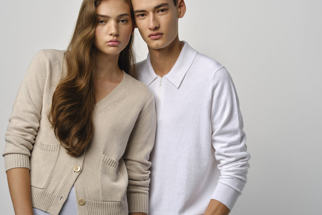Made of 95% ECO cotton and 5% cashmere. The addition of cashmere warms this organic cotton with the 'ECO' designation to maximize the thermal effect between seasons, and give it a charming softness.