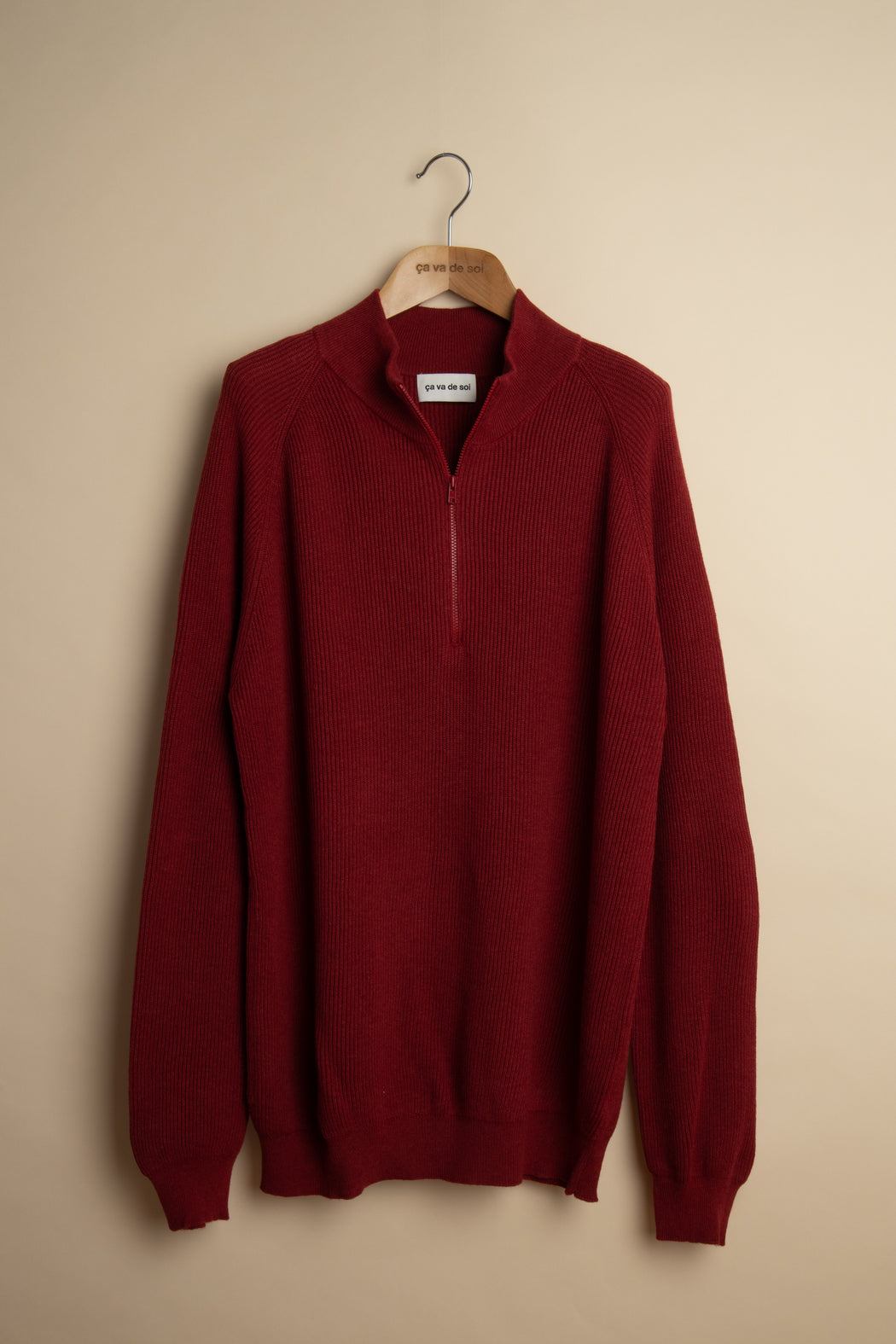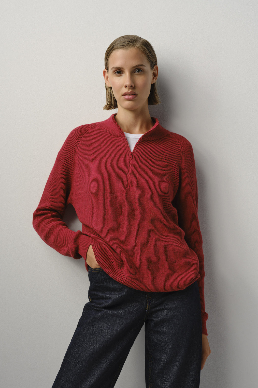 This great sportswear classic for men knitted in English rib stands out with the dynamism of its raglan armholes. It is worn with the collar open over a t-shirt or shirt or completely closed to keep the neck warm. Casually elegant, it will ease your life by being suitable for any occasion.