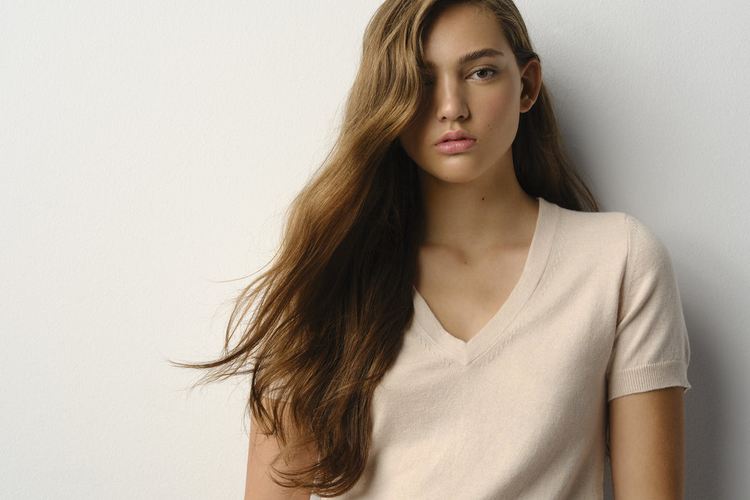 Made of 95% ECO cotton and 5% cashmere. The addition of cashmere warms this organic cotton with the 'ECO' designation to maximize the thermal effect between seasons, and give it a charming softness.