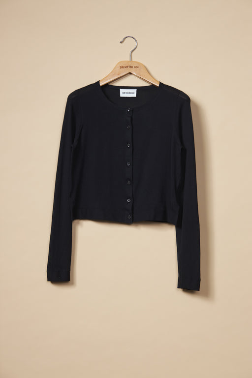 When you think about it, the cardigan is a sewn blazer redesigned and transformed in a knitted version. And this is exactly what ça va de soi does best: reinterprets a classic, makes it less rigid, more flexible and softer. With or without a collard, short, or long sleeves, zipped, belted, buttoned, longer or shorter, black, ivory or azure-blue, the cardigan is a must- in all its forms.