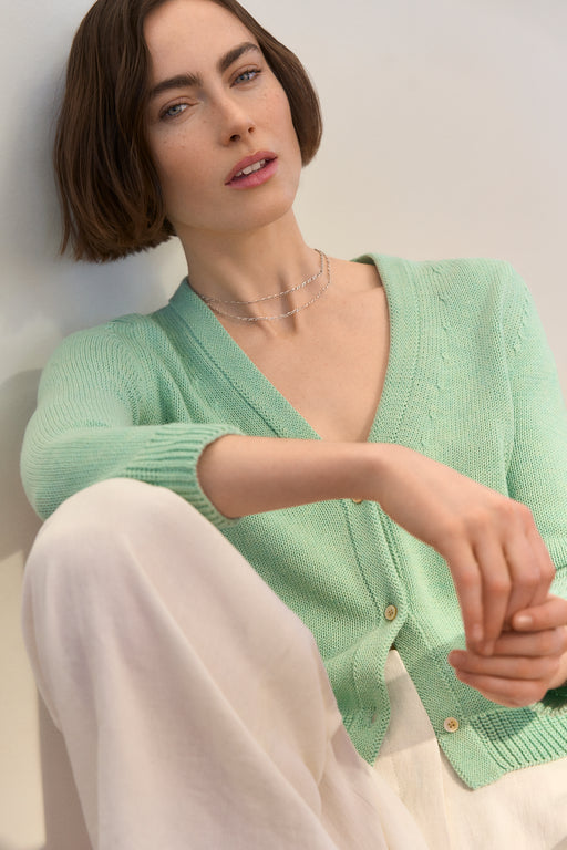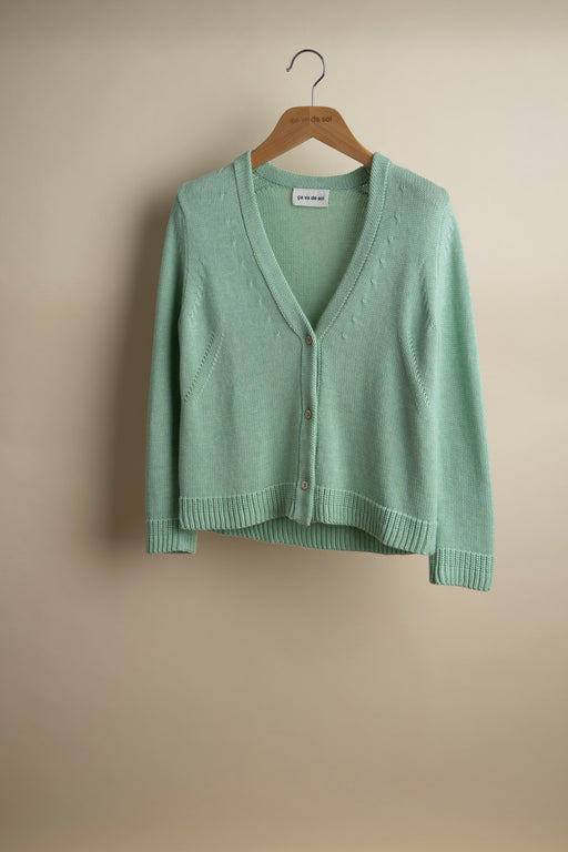 When you think about it, the cardigan is a sewn blazer redesigned and transformed in a knitted version. And this is exactly what ça va de soi does best: reinterprets a classic, makes it less rigid, more flexible and softer. With or without a collard, short, or long sleeves, zipped, belted, buttoned, longer or shorter, black, ivory or azure-blue, the cardigan is a must- in all its forms.