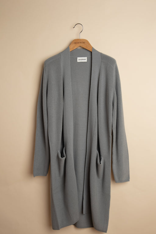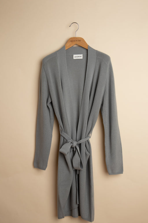 When you think about it, the cardigan is a sewn blazer redesigned and transformed in a knitted version. And this is exactly what ça va de soi does best: reinterprets a classic, makes it less rigid, more flexible and softer. With or without a collard, short, or long sleeves, zipped, belted, buttoned, longer or shorter, black, ivory or azure-blue, the cardigan is a must- in all its forms.