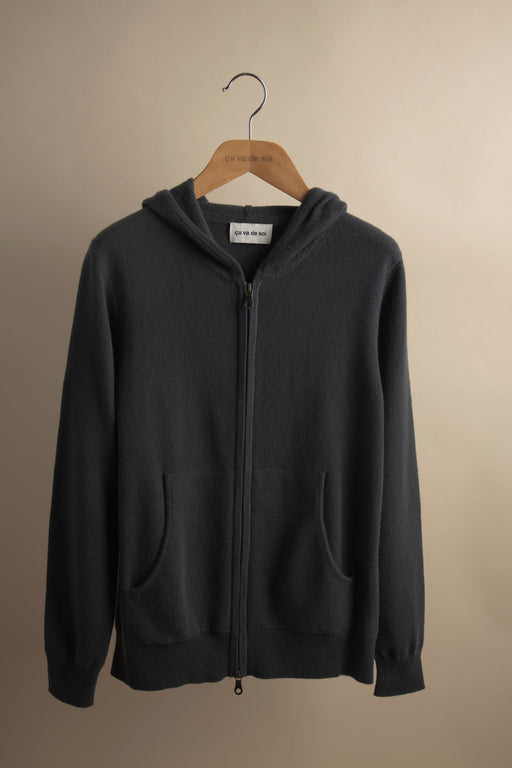 When you think about it, the cardigan is a sewn blazer redesigned and transformed in a knitted version. And this is exactly what ça va de soi does best: reinterprets a classic, makes it less rigid, more flexible and softer. With or without a collard, short, or long sleeves, zipped, belted, buttoned, longer or shorter, black, ivory or azure-blue, the cardigan is a must- in all its forms.